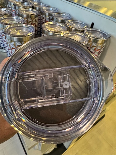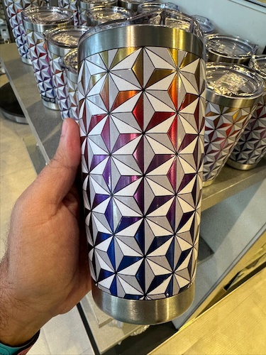 - Featuring the attraction's geometric design, this new souvenir drink container showcases a textured finish rather than just a printed design.