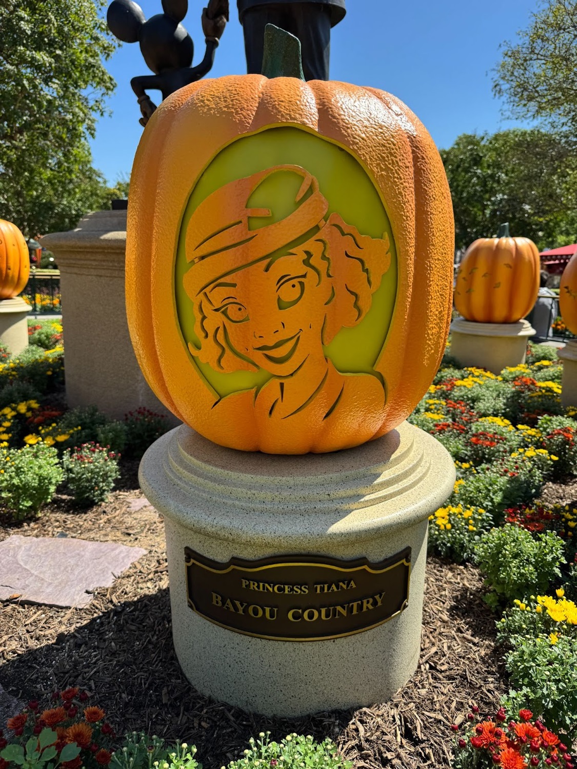 There are pumpkins all up and down Main Street, including one new one this year representing Tiana and Bayou Country!