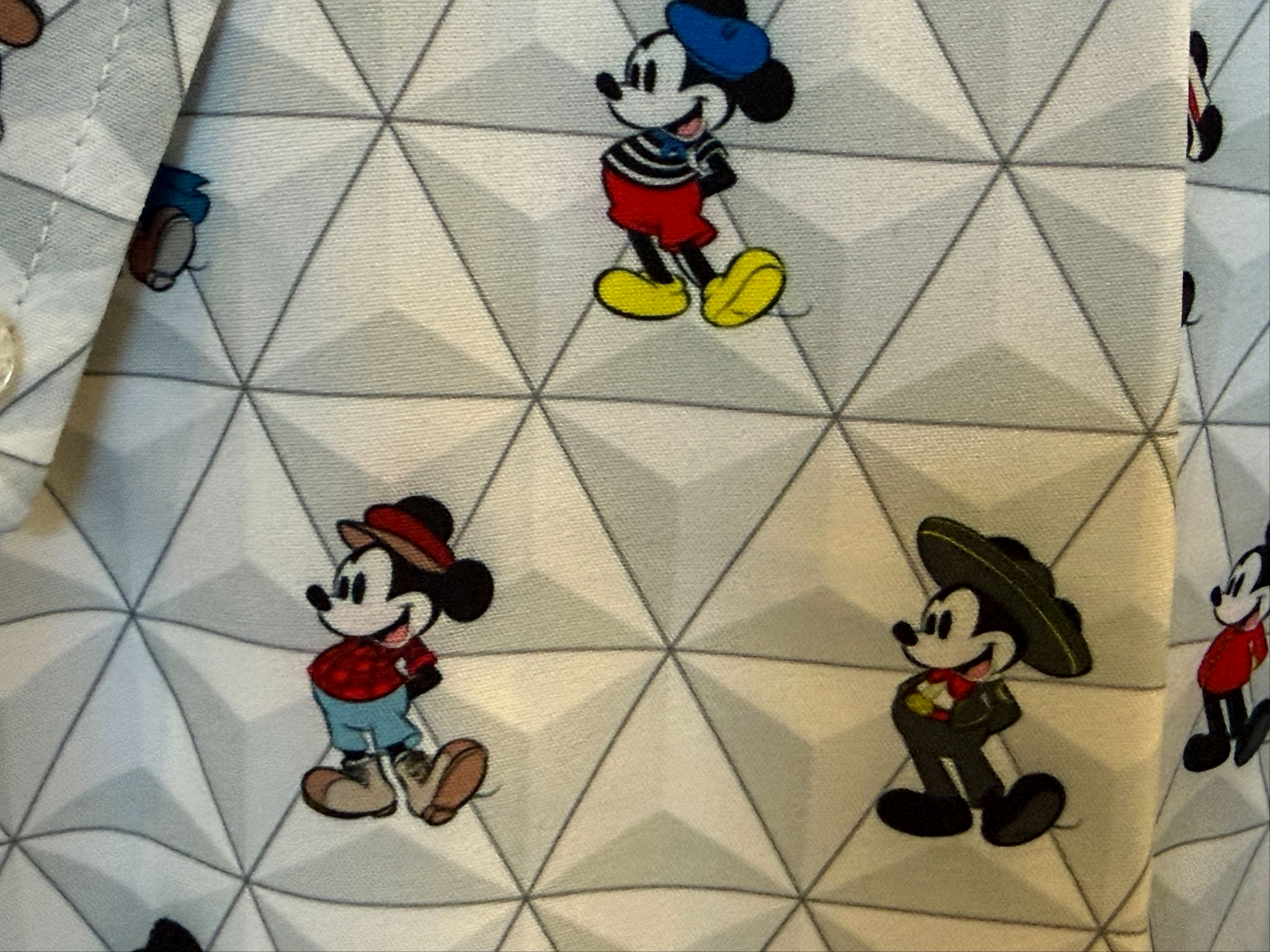 - For those looking for apparel, a new RSVLTS button up shirt has arrived, featuring designs of Spaceship Earth as well as Mickey Mouse at the different country pavilions around the Walt Disney World park.