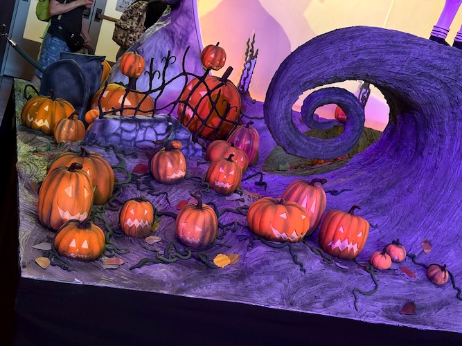 - Beneath them sits a patch of carved pumpkins—and, of course, we spotted a hidden Mickey!