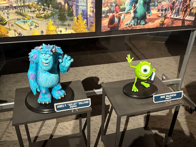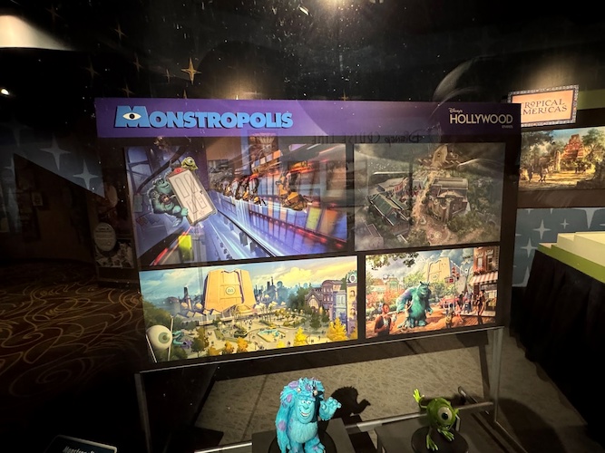 First up is a look at the Monsters Inc. Door Coaster (working title) coming to Disney’s Hollywood Studios. Concept art for the ride and the surrounding land is on display along with maquettes of Sulley and an unobstructed Mike Wazowski.
