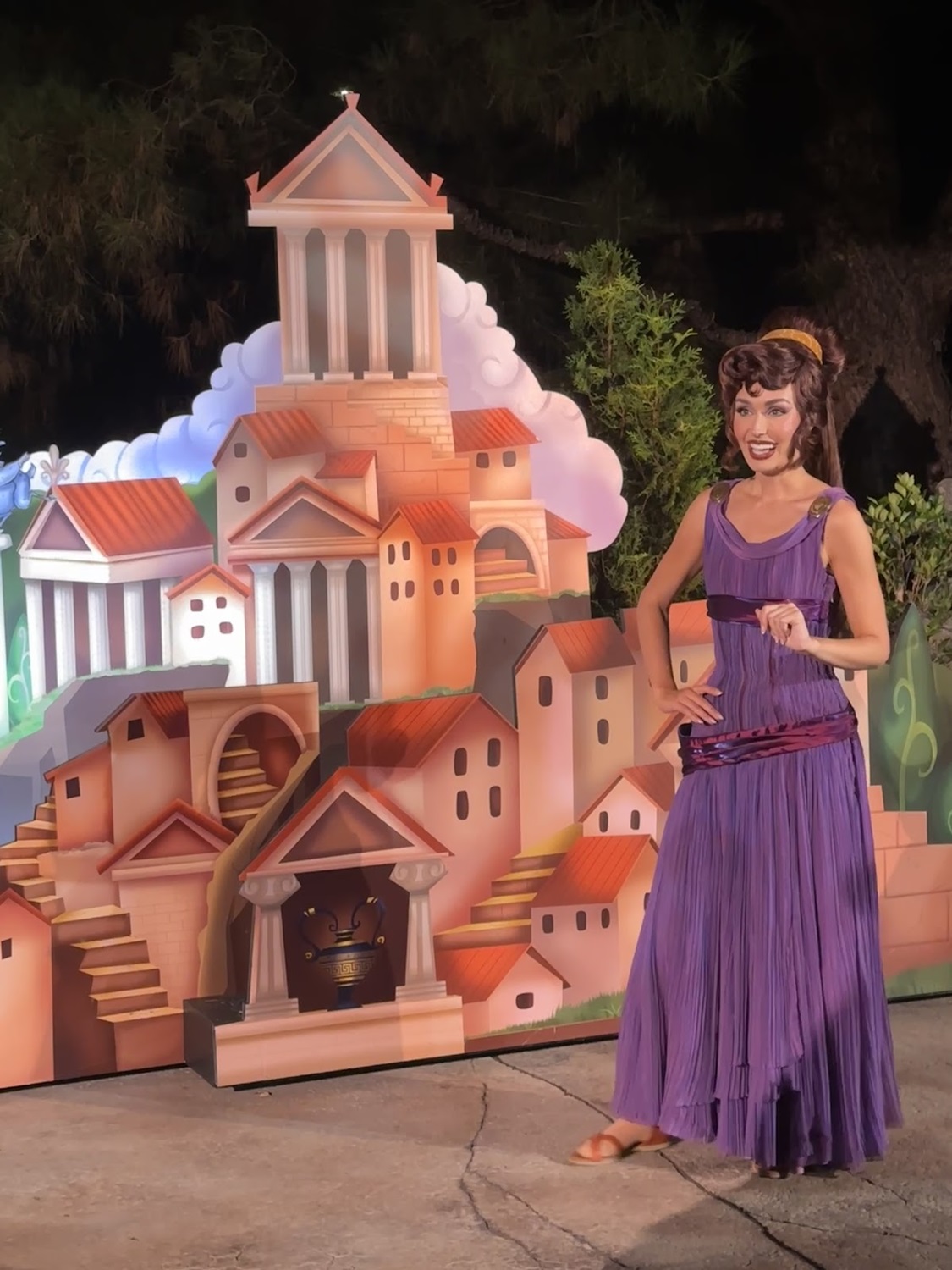 Other characters can be found throughout the park, including Hades’ sidekicks Meg (yes, remember she was bad at first!), Pain, and Panic.