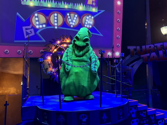 Inside the Disney Animation building, Oogie Boogie, the namesake for the event, can be found as the entire lobby - normally playing iconic moments and music from Disney and Pixar classics - is once again turned into his casino-esque lair.