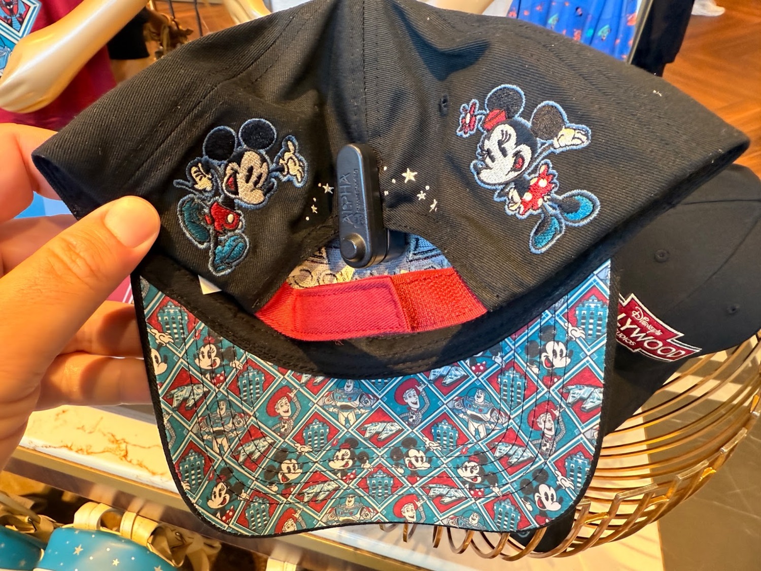 A baseball cap has the park logo on the front and Mickey & Minnie on the back. It sells for $29.99.