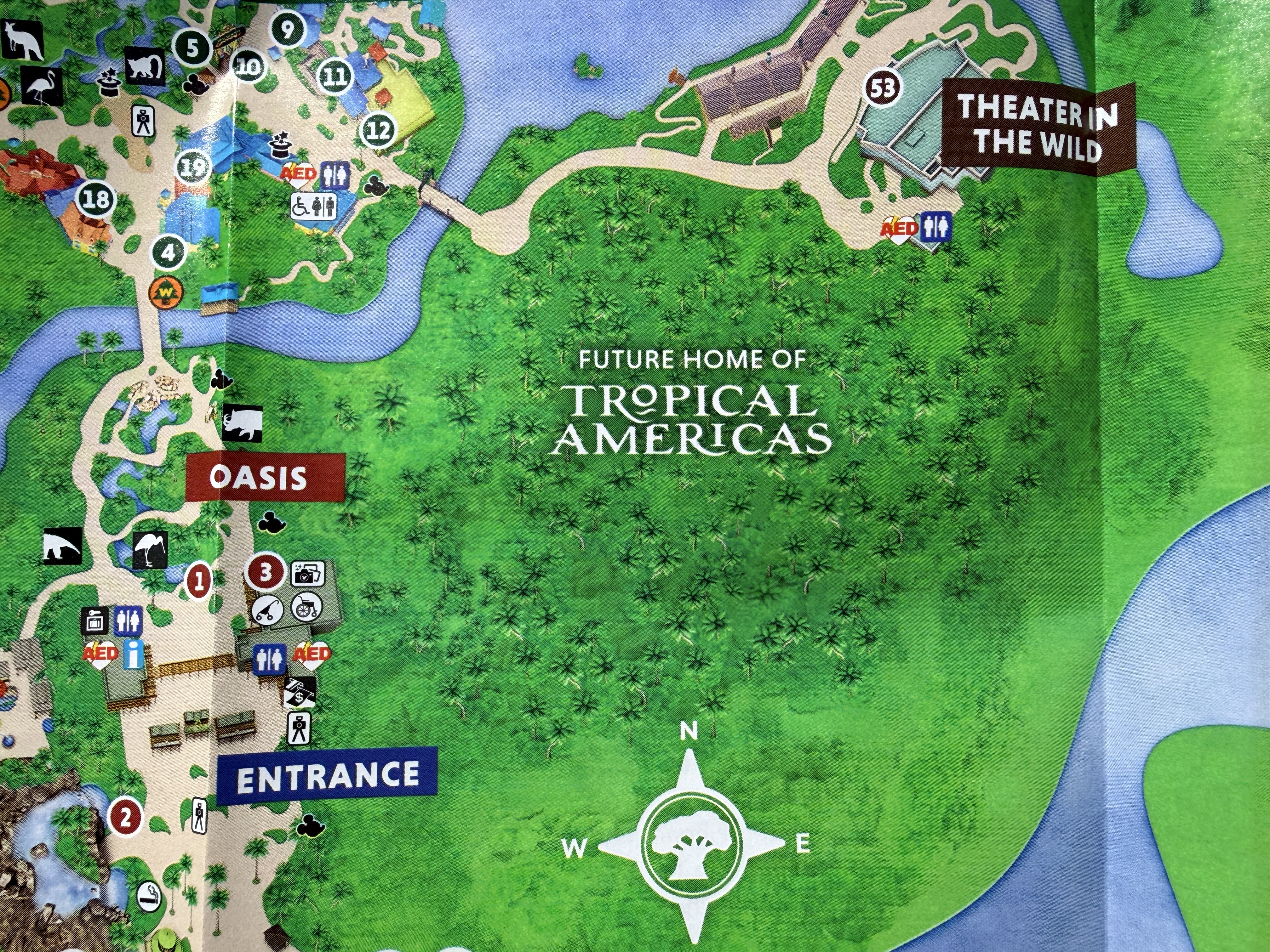 • The physical Disney's Animal Kingdom park map also now reflects the DinoLand U.S.A. closure, marking the area as the future home of Tropical Americas.