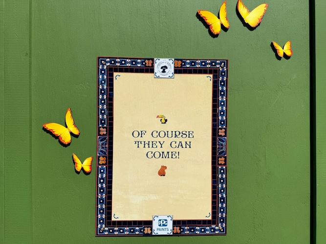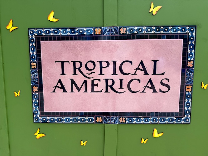 - The construction walls surrounding the now defunct Chester & Hester’s Dino-Rama are now decorated with concept artwork and signage for the upcoming Tropical Americas area at Disney’s Animal Kingdom.