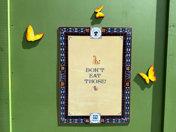 The phased closing of DinoLand USA is well underway at Disney’s Animal Kingdom. Now, the construction walls surrounding the former Chester & Hester’s Dino-Rama are decorated in artwork for the upcoming Tropical Americas area.