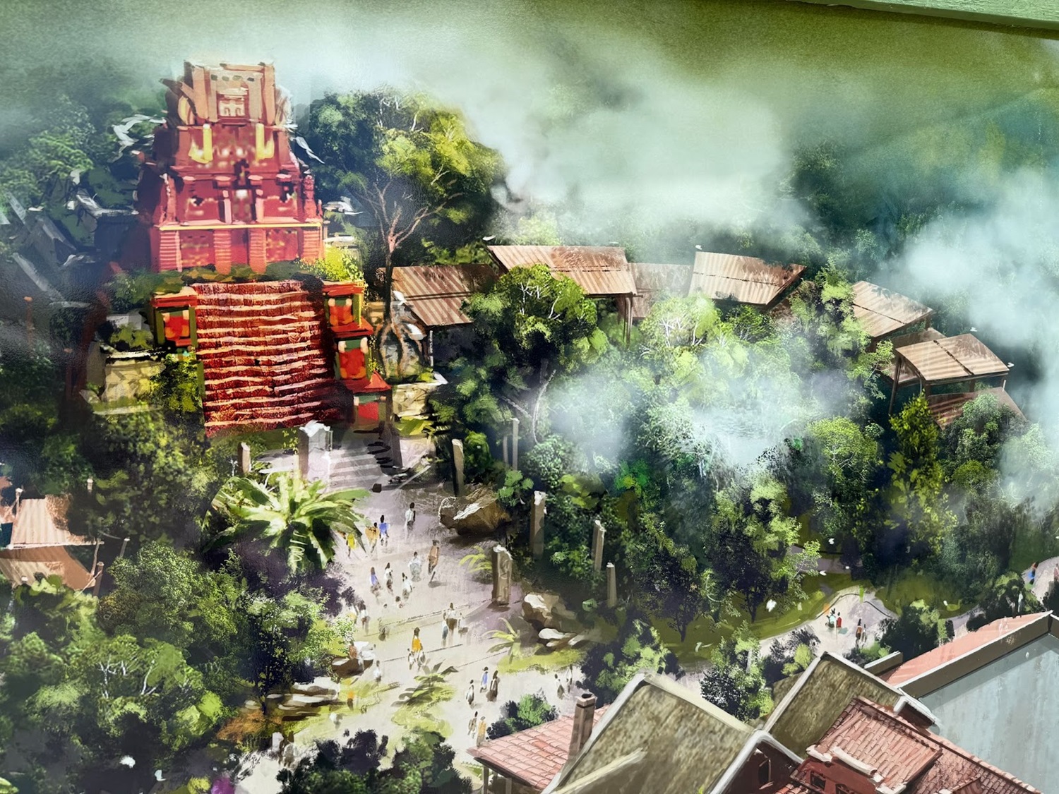 - The construction walls surrounding the now defunct Chester & Hester’s Dino-Rama are now decorated with concept artwork and signage for the upcoming Tropical Americas area at Disney’s Animal Kingdom.