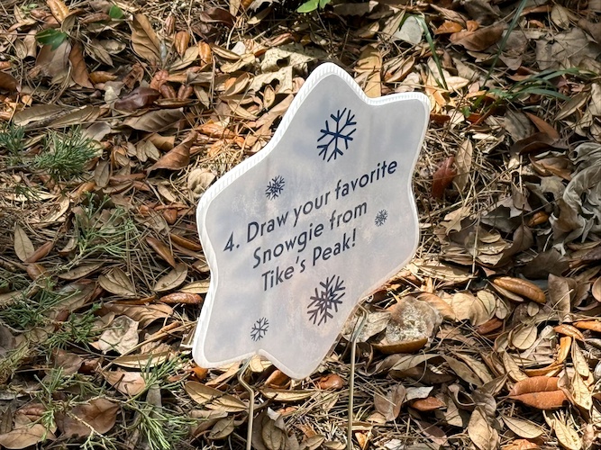 Blizzard Beach was also offering a Snowflake Scavenger Hunt. With a numbered map, guests are sent out on a search for snowflake shaped signs around the park. Each numbered box will require you to complete a task. After completing the scavenger hunt, guests could head back to the Lost Children Hut to redeem for a prize. We grabbed a snowman rubber duck.