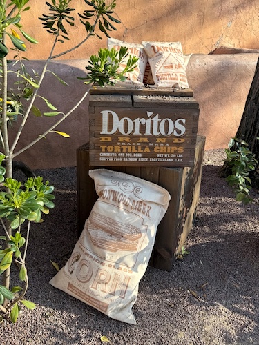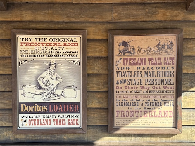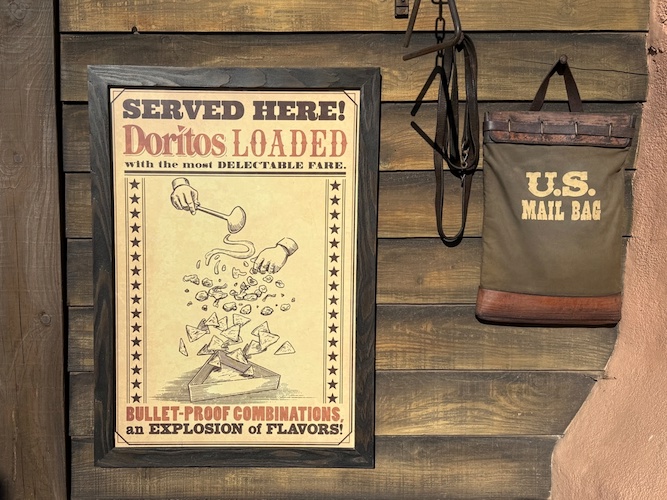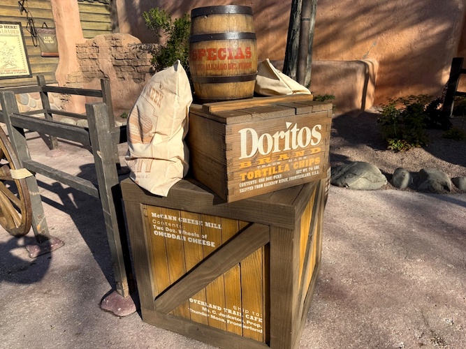 Though it might surprise some guests to see so much Doritos imagery in Frontierland, tying Doritos into Frontierland lore actually has a real world background, since the popular snack item actually originated at Disneyland in Anaheim. In the 1960s, Doritos began life as a special item made at Casa de Fritos (now known as Rancho Del Zocalo) in the original Frontierland.