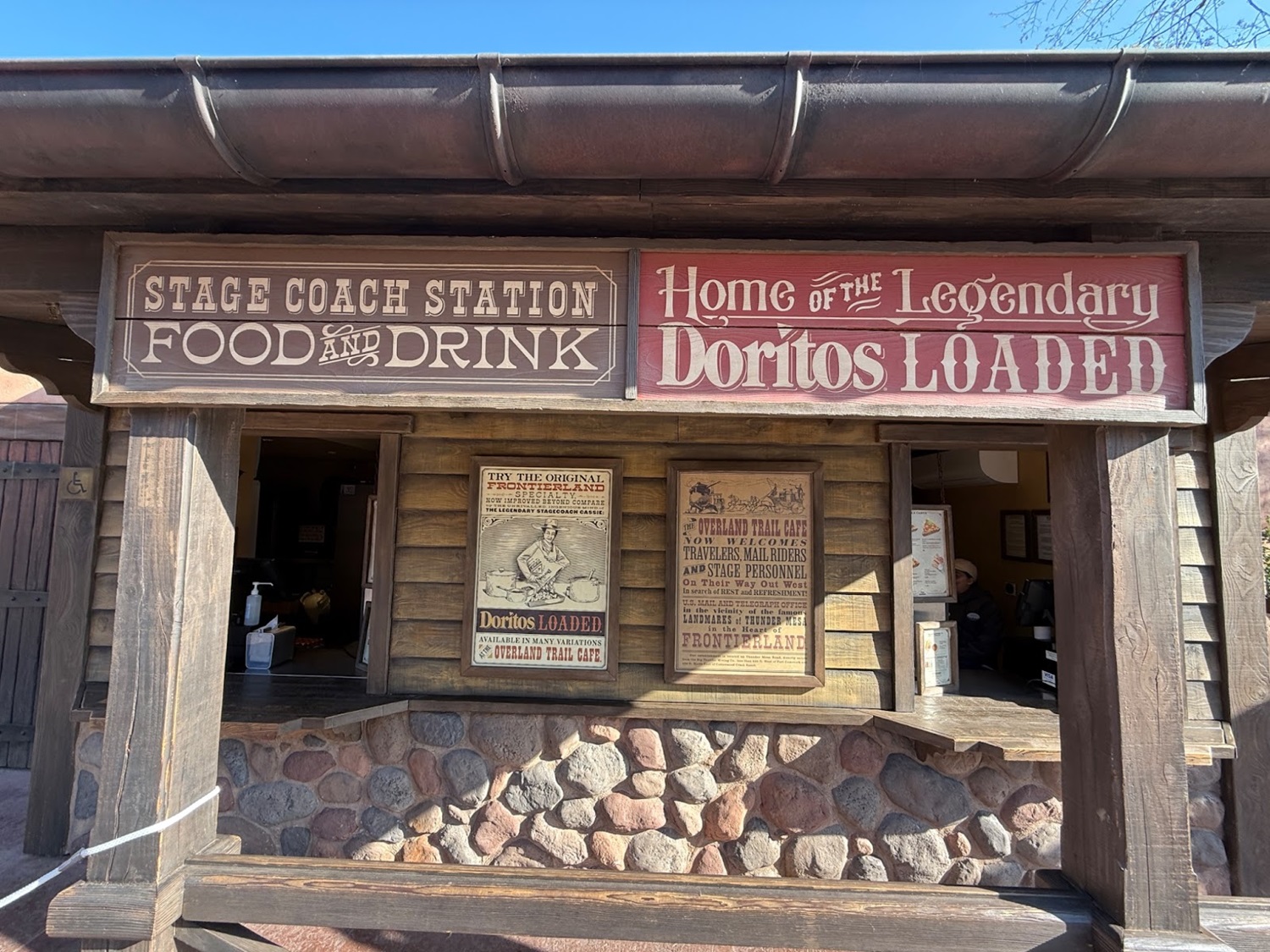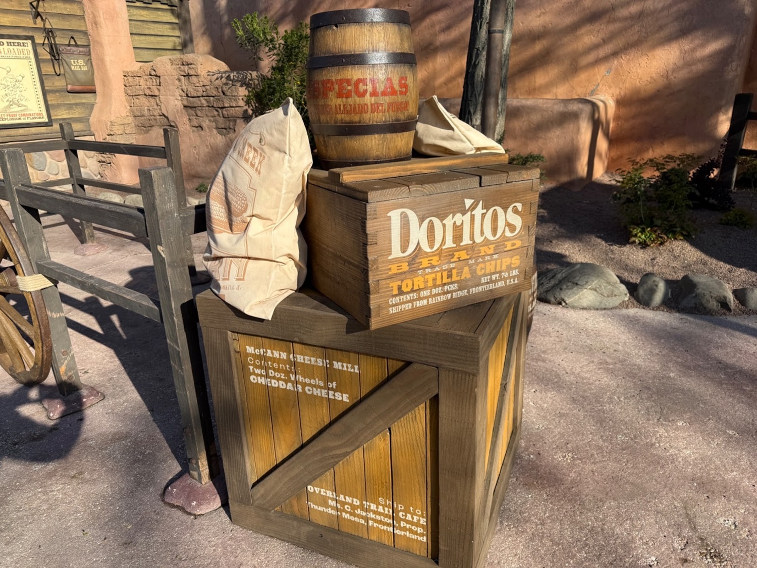 Though it might surprise some guests to see so much Doritos imagery in Frontierland, tying Doritos into Frontierland lore actually has a real world background, since the popular snack item actually originated at Disneyland in Anaheim. In the 1960s, Doritos began life as a special item made at Casa de Fritos (now known as Rancho Del Zocalo) in the original Frontierland.