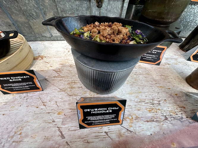 Dewback Chili Noodles (Docking Bay 7) – Spiced fettuccine and gingered ground pork with brussels sprout leaves and shredded red cabbage.