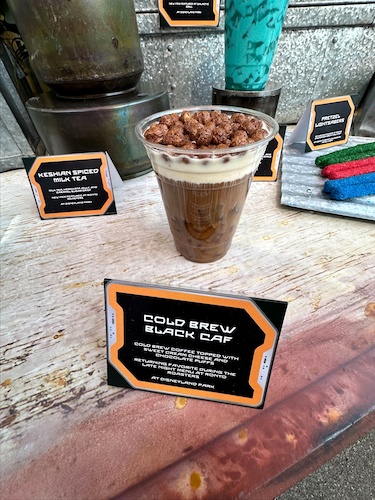 Cold Brew Black Caf (Late Night Menu at Ronto Roasters) – Cold brew with cream cheese cold foam and chocolate puffs.