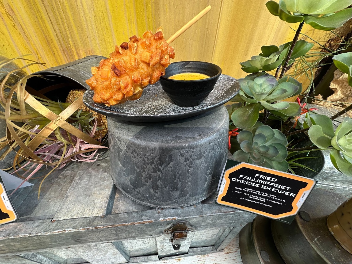 NEW Fried Falumpaset Cheese Skewer (Ronto Roasters) – Fried cheese with crispy potatoes, served with mustard-cheese dipping sauce.