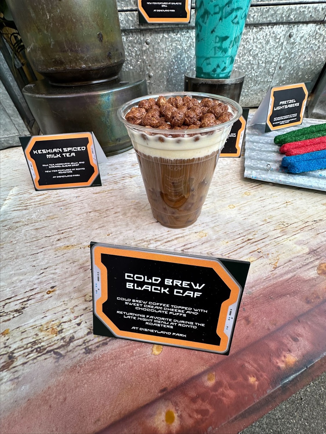 Cold Brew Black Caf (Late Night Menu at Ronto Roasters) – Cold brew with cream cheese cold foam and chocolate puffs.
