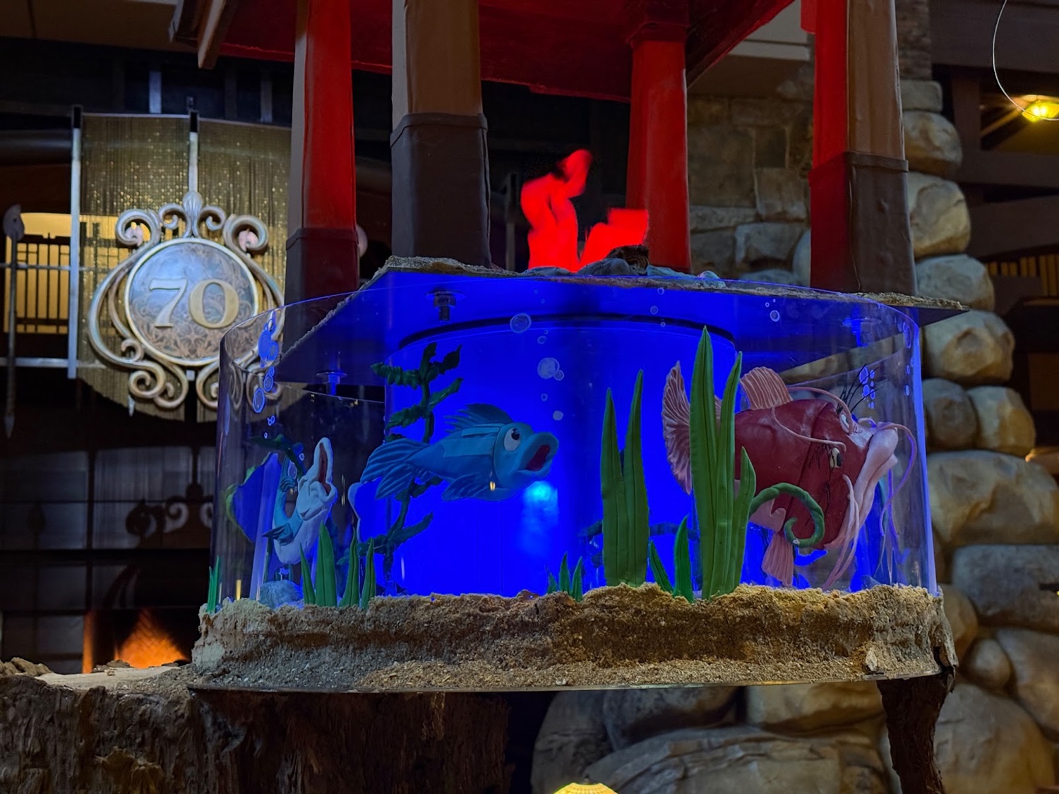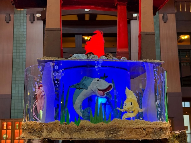 The sculpture is titled Donald’s Tales of Adventure, sharing the same name as the new character dinner buffet that has debuted at the Grand Californian’s Storytellers Cafe as part of Disneyland’s 70th anniversary celebration.