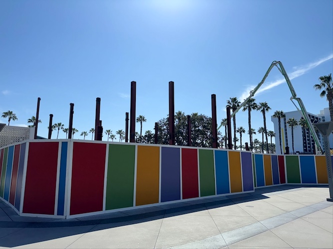 - Over in the new West Side plaza area, pylons have risen for the new two story dining venue, which will host a new permanent location for Earl of Sandwich and the new Carnaby Tavern.