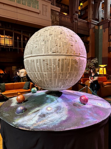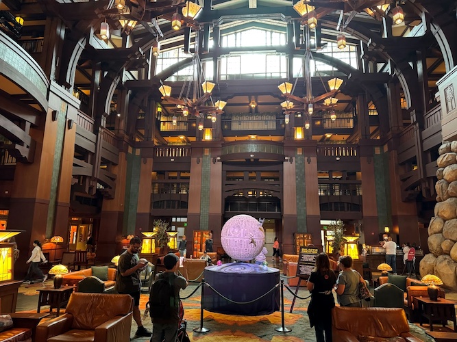 - Inside Disney’s Grand Californian Resort & Spa, a large Death Star has appeared inside the lobby.