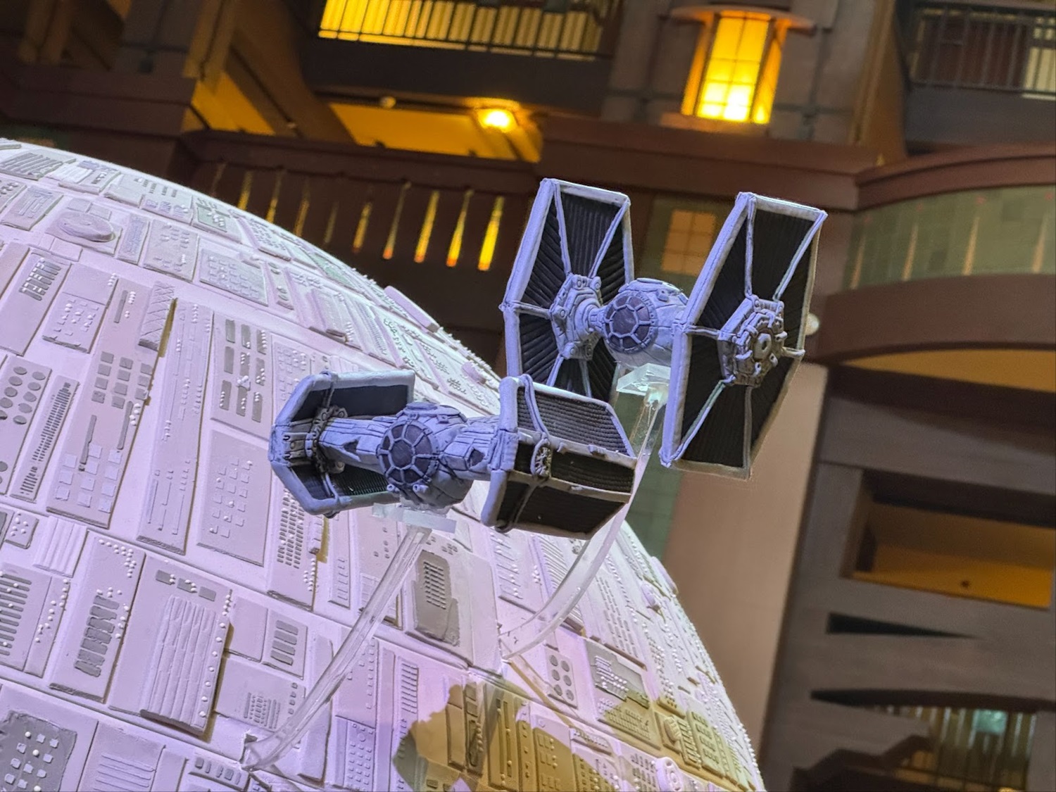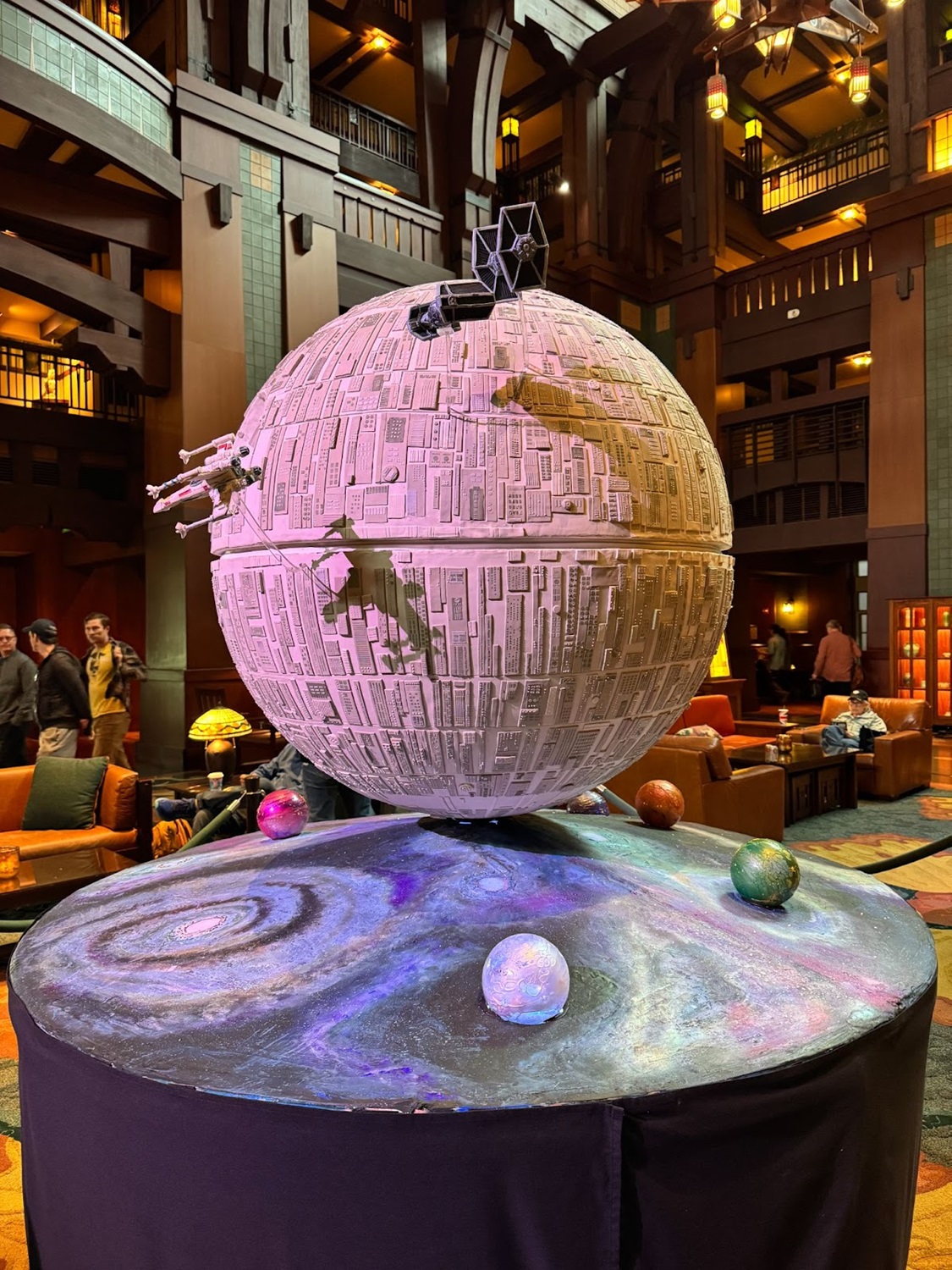 - Inside Disney’s Grand Californian Resort & Spa, a large Death Star has appeared inside the lobby.