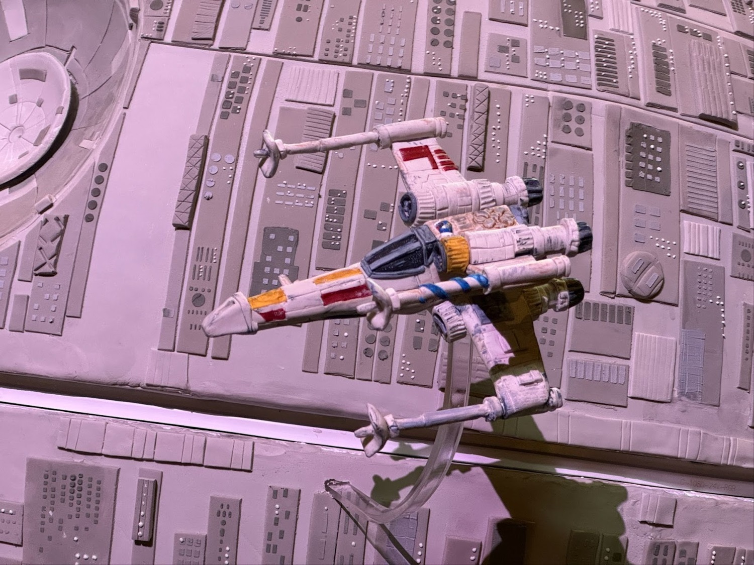 - If you look up close, you’ll see an epic chase between an X-Wing and Tie Fighter Ships flying around the Star Wars icon.