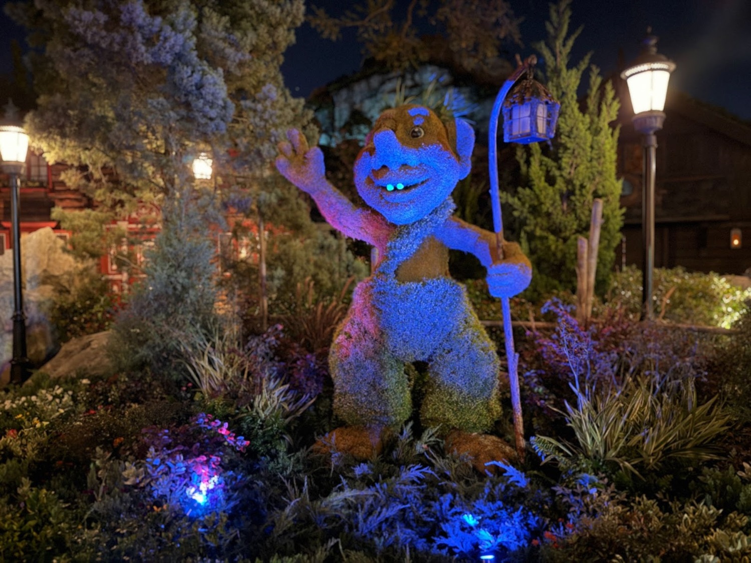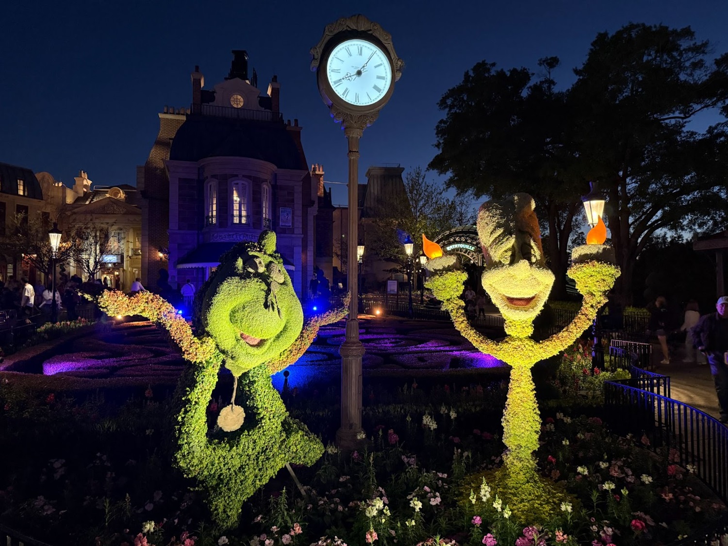 The EPCOT International Flower and Garden Festival is currently taking place at the Walt Disney World Resort. There are so many exciting things to discover at this festival, and one of them is the beautiful topiaries all over EPCOT. At night there are lights on these beautiful creations, so make sure to check them out both during the day and at night. We have some photos of the incredible topiaries after dark.