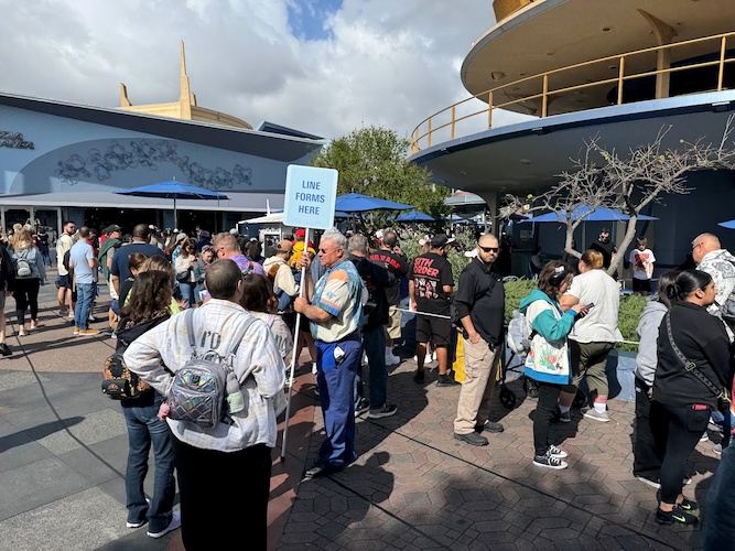 As is quite often the case with any new release like this, Star Wars fans came out in droves to get their hands on one, leading to a long line at the Tomorrowland popcorn cart.