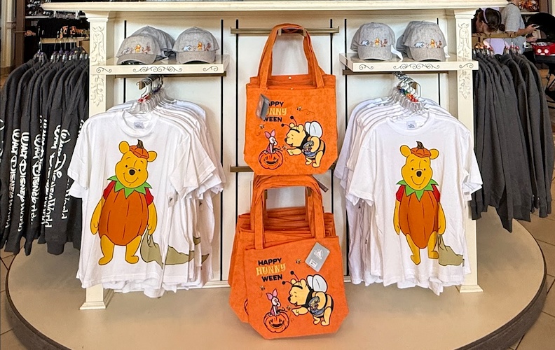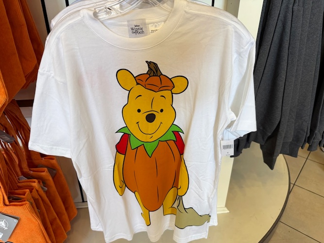 A T-Shirt featuring Pooh in a pumpkin costume is $34.99.
