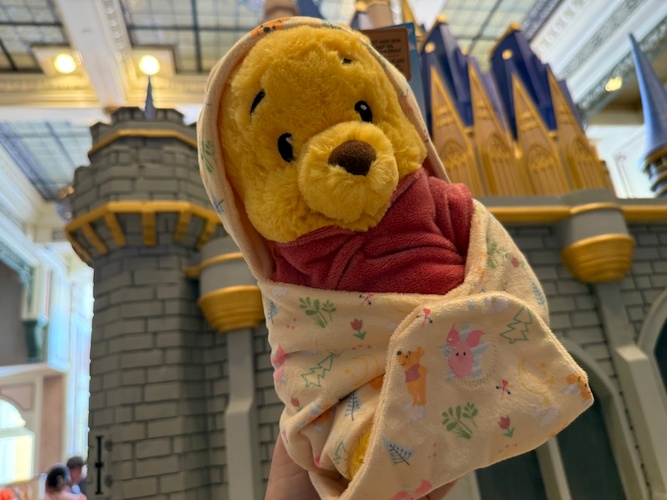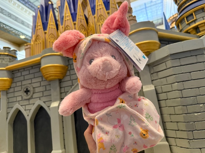 And plushes of baby versions of Winnie the Pooh in a Swaddle, plus Eeyore and Piglet as well for $34.99 each.
