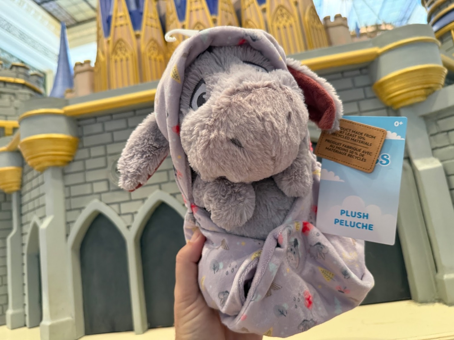 And plushes of baby versions of Winnie the Pooh in a Swaddle, plus Eeyore and Piglet as well for $34.99 each.