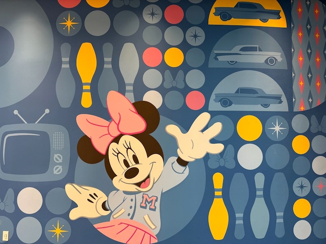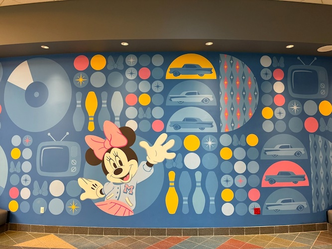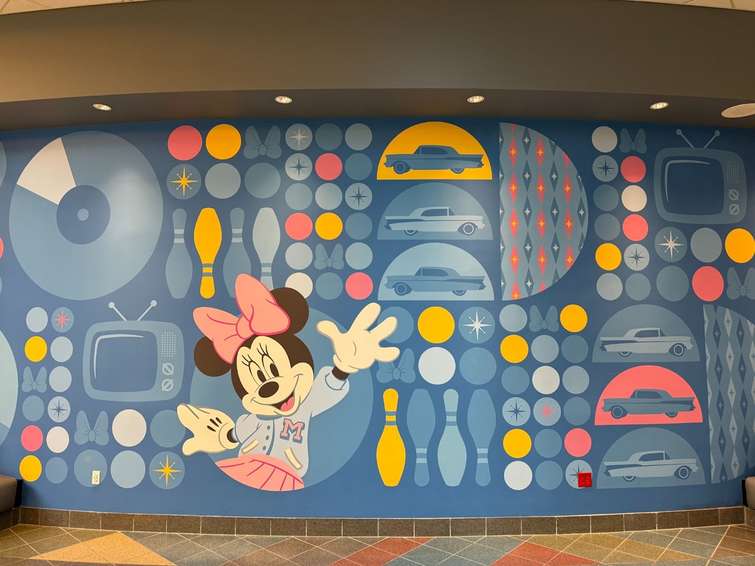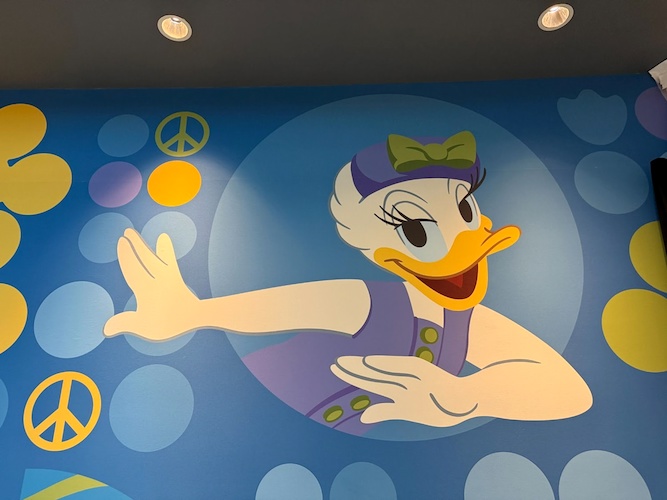 Closer towards Everything Pop Shopping & Dining, a new mural has appeared, with Minnie looking her 50s best, while Daisy adorns some 60s flower power. These murals replace a collection of artifacts and photographs from various facets of pop culture, from the 50s through the 90s.