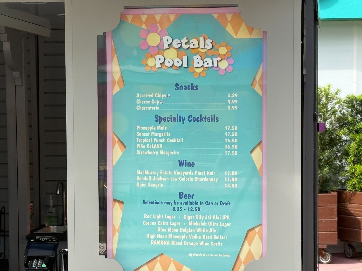 Just outside the lobby, in front of the Hippy Dippy Pool, the Petals Pool Bar is currently closed for refurbishment. But not to worry, a temporary kiosk has been set up in front of the usual bar with a simpler menu.