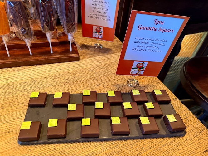 The Ganachery has Fruit Ganache Pops, Orange Ganache Pops and Lime Ganache Squares.