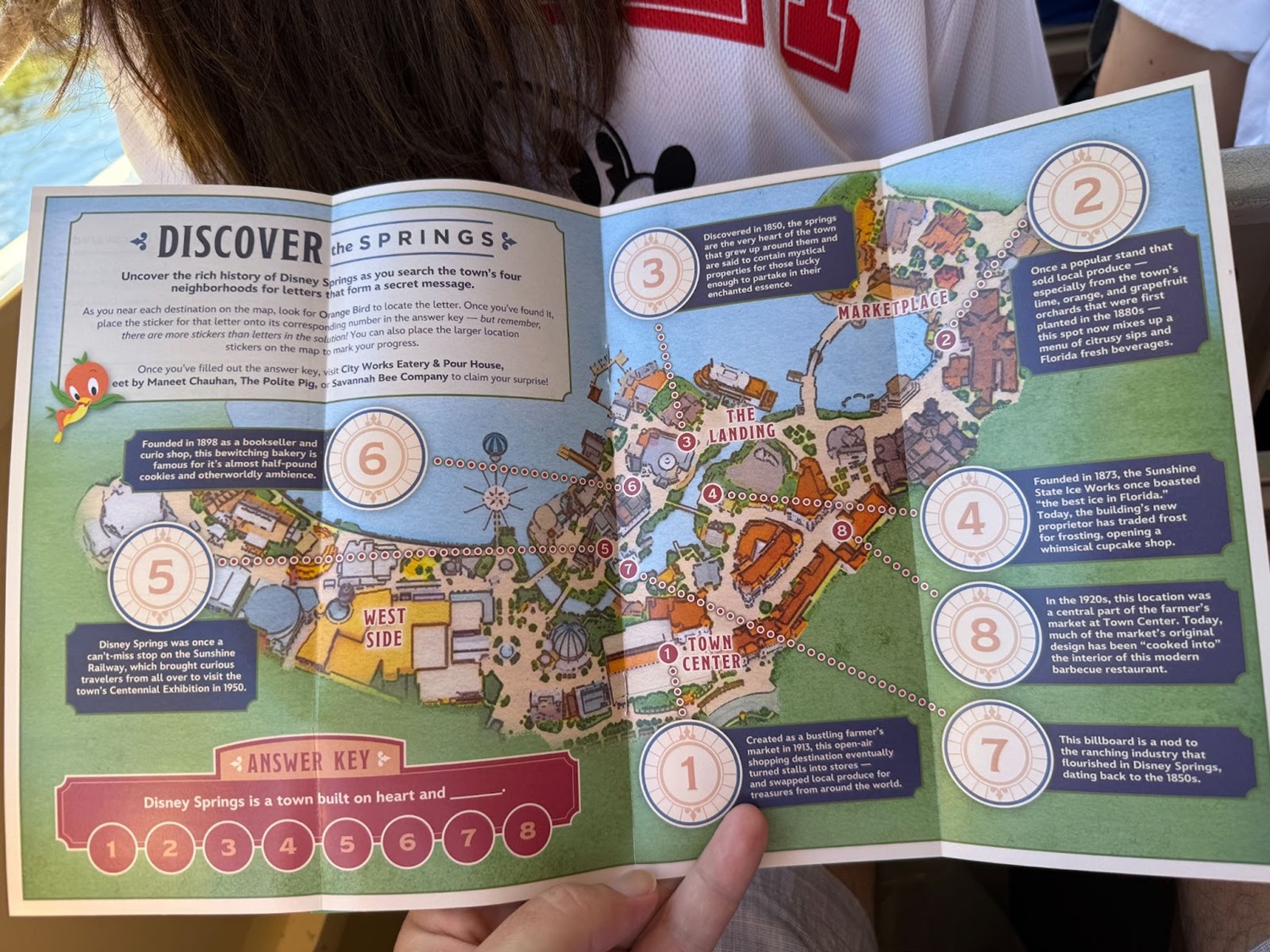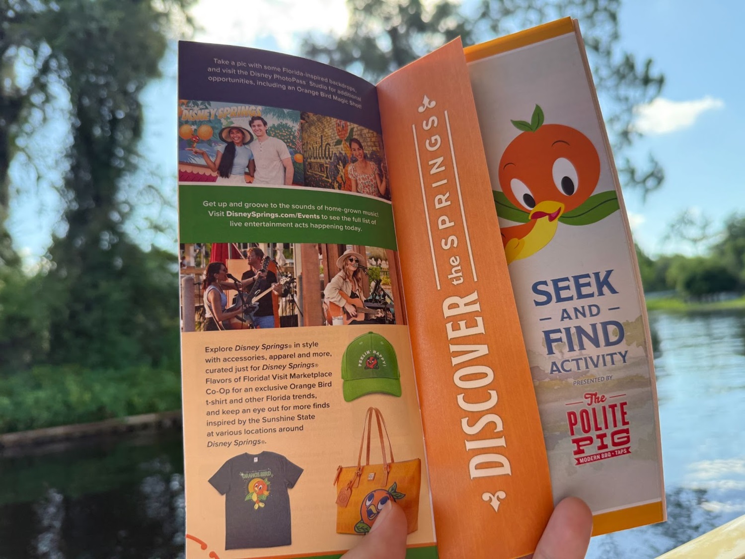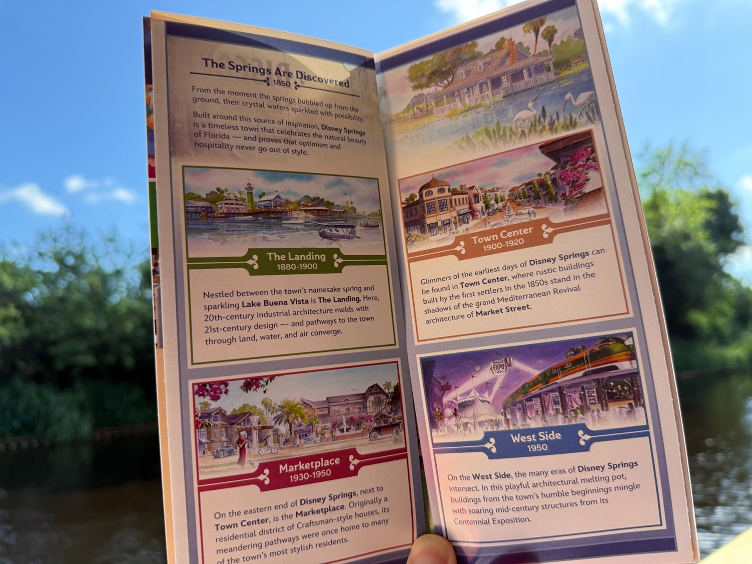 In the Flavors of Florida booklet, a Seek and Find activity not only encourages guests to explore Disney Springs but also offers the “history" of the area.