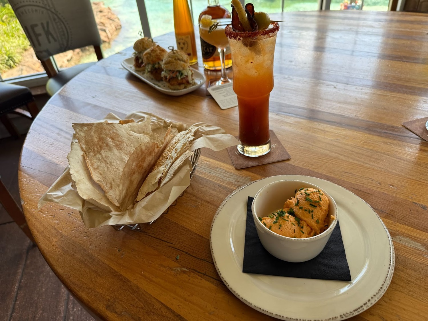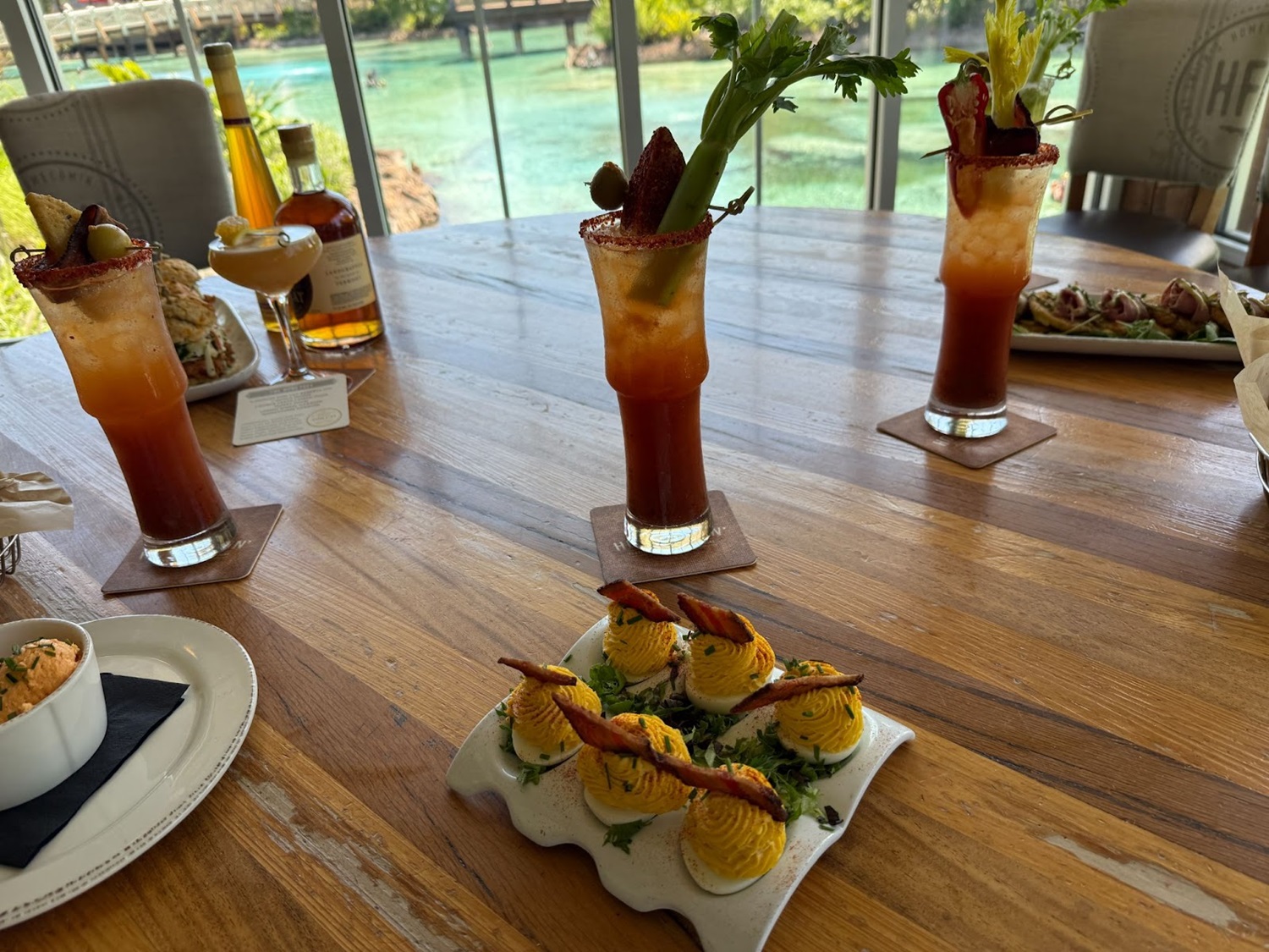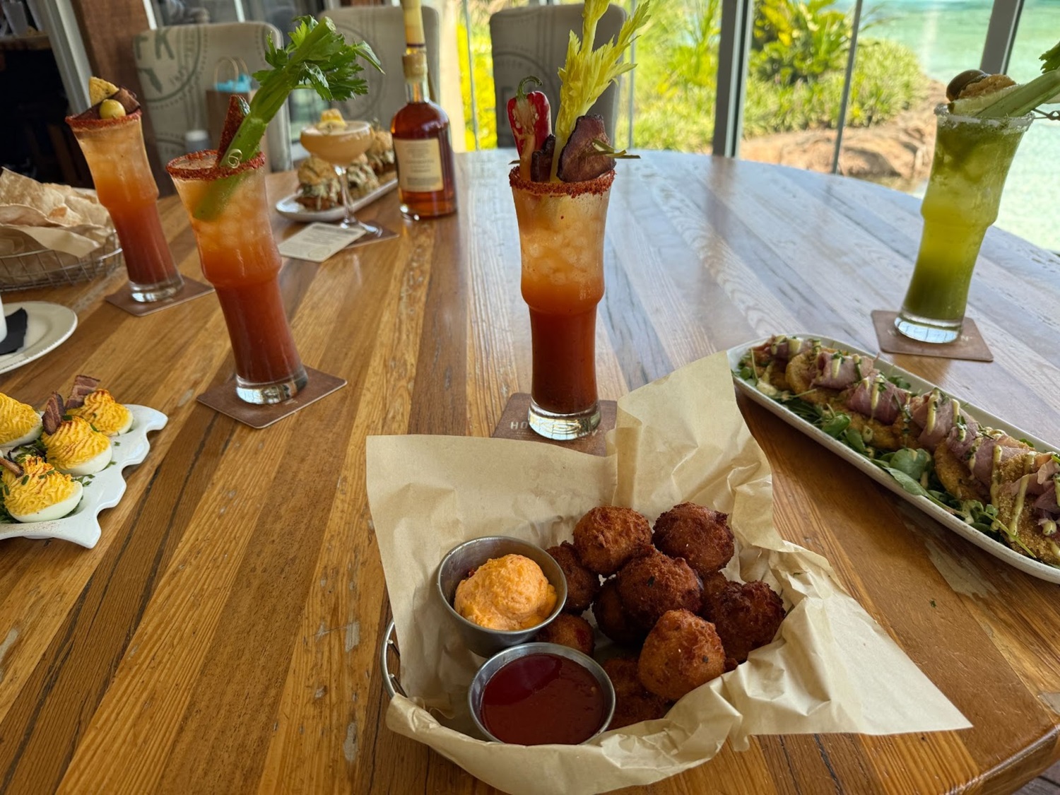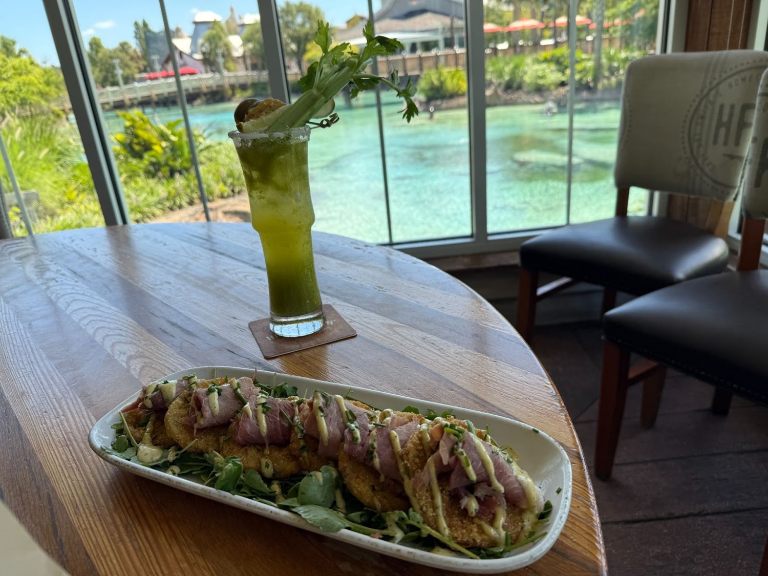 And from Jock Lindsey’s Hangar Bar, Gulf White Shrimp Fritters – Sunshine Stroll Orange Pilsner-battered Gulf white shrimp fritter, grilled sweet peppers, and Datil pepper aïoli.