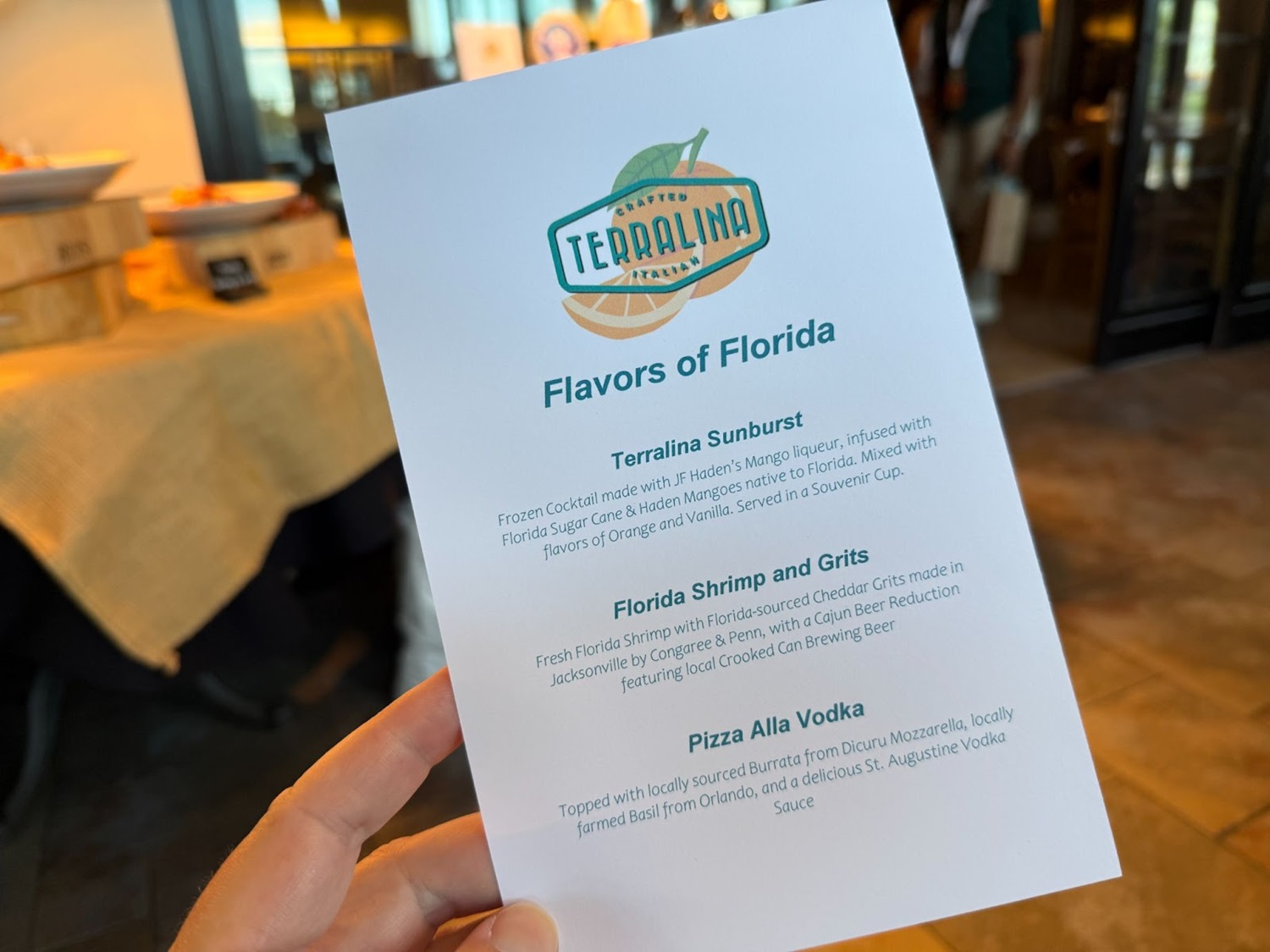 Moving along to Terralina Crafted Italian, where we got to sample the Terralina Sunburst frozen cocktail, Florida Shrimp and Grits, and Pizza Alla Vodka.