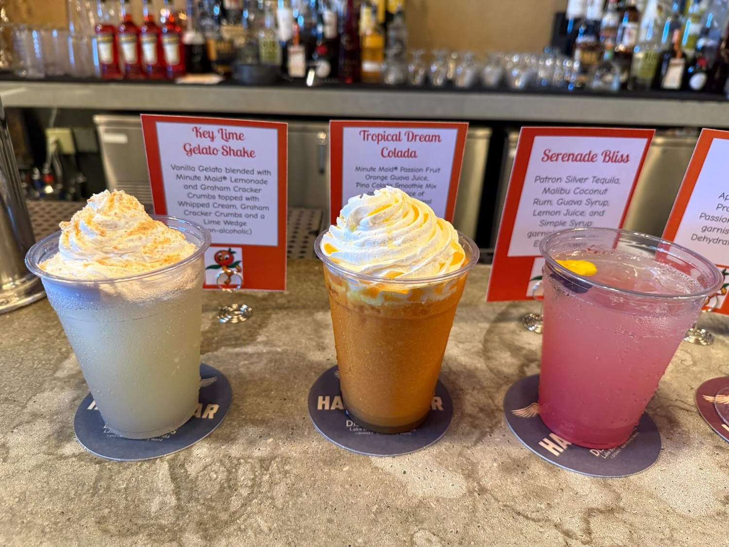 Left to right, we have the Key Lime Pie Shake from Ghirardelli Soda Fountain & Chocolate Shop, Tropical Dream Colada from Amorette’s Patisserie and the Serenade Bliss available at Outdoor Vending Carts.