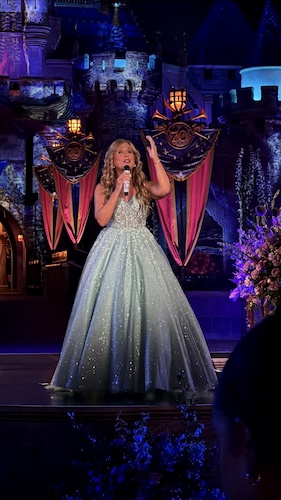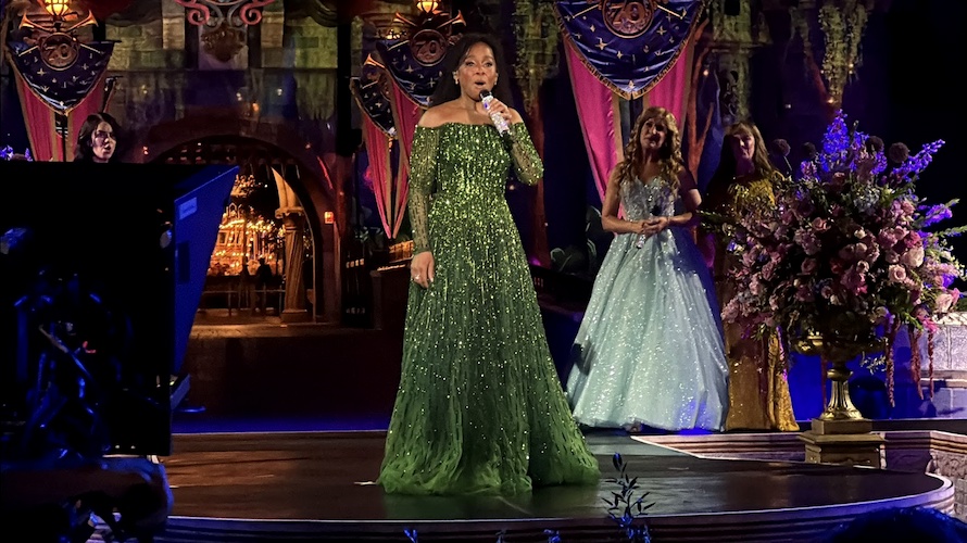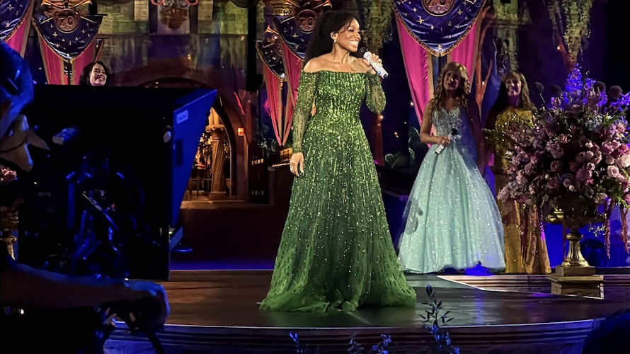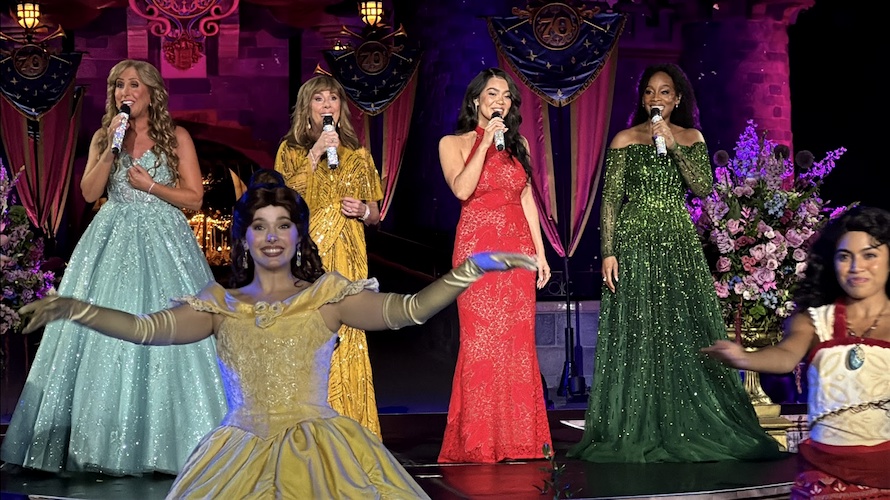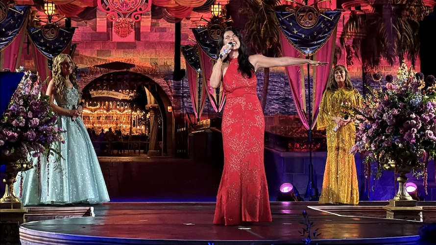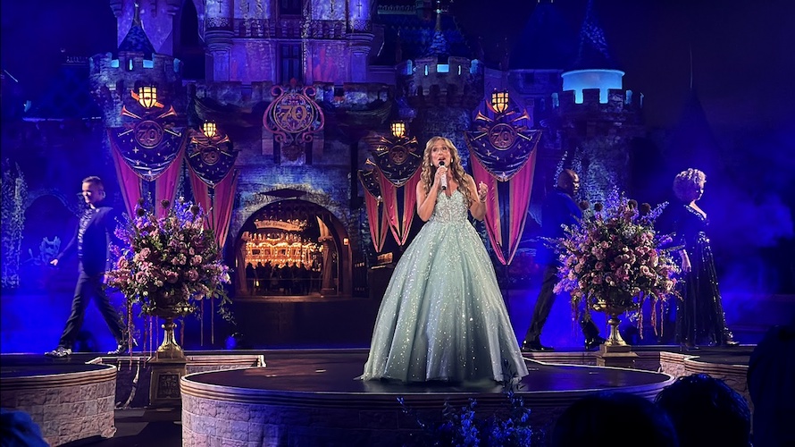 The stage was set for a one-of-a-kind performance featuring the voices of some of Disney’s most iconic animated princesses. As night fell, the glowing lights came on for the magical performance.