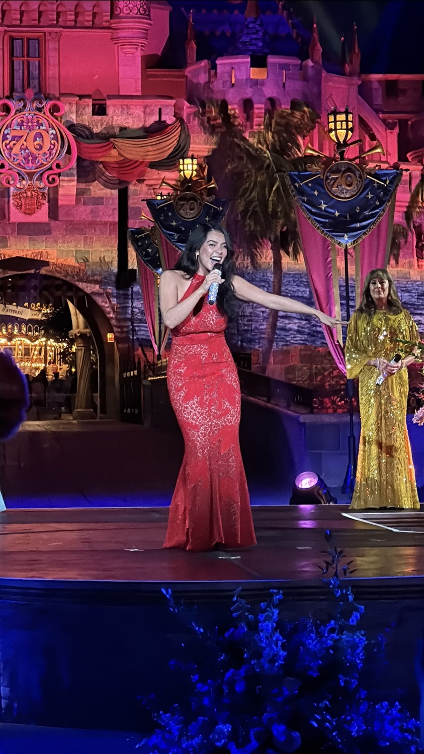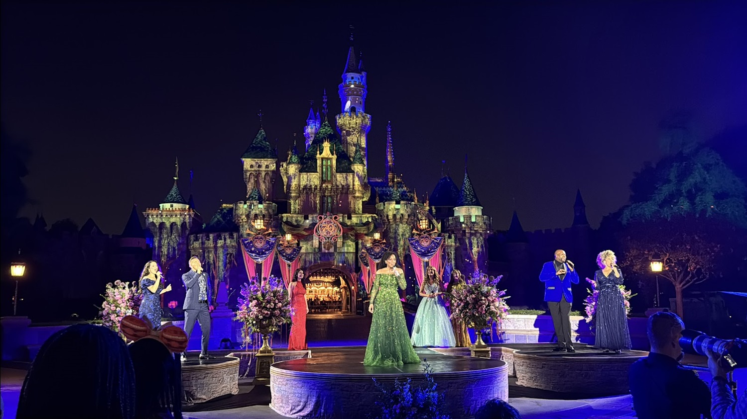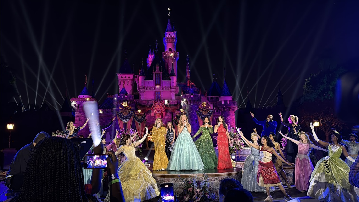 The stage was set for a one-of-a-kind performance featuring the voices of some of Disney’s most iconic animated princesses. As night fell, the glowing lights came on for the magical performance.