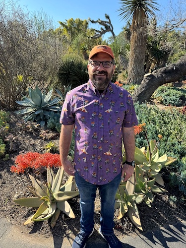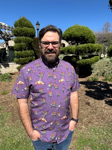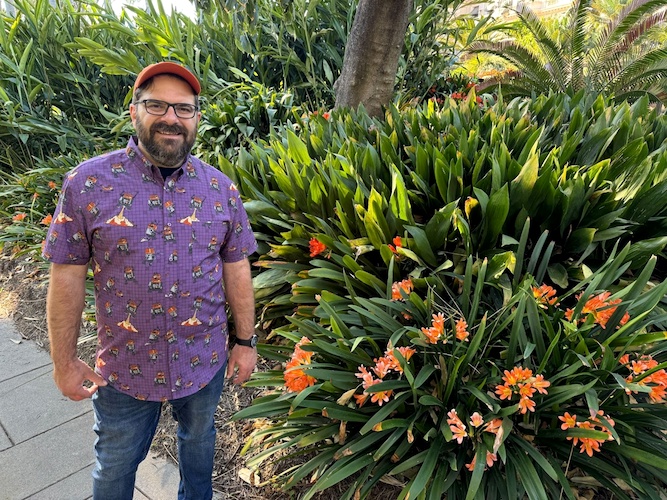 Yesterday we spent the day at the beautiful Huntington Library, Art Museum and Botanical Gardens here in Southern California, and I rightly figured that this would be the perfect opportunity to show off this colorful new shirt from RSVLTS. We even found a number of orange-hued flowers around the gardens to match the highlights on Chopper’s dome (not to mention the Lothcat’s fur) in the illustrations.