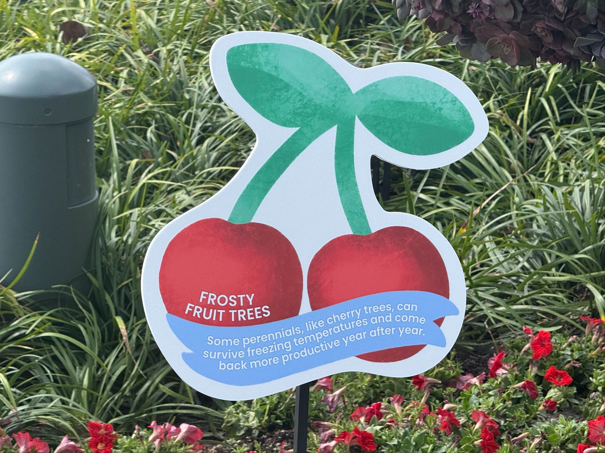 - The topiaries included cherry, grape, and orange-themed displays, each with an information card highlighting fun facts about water.