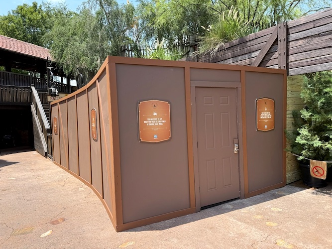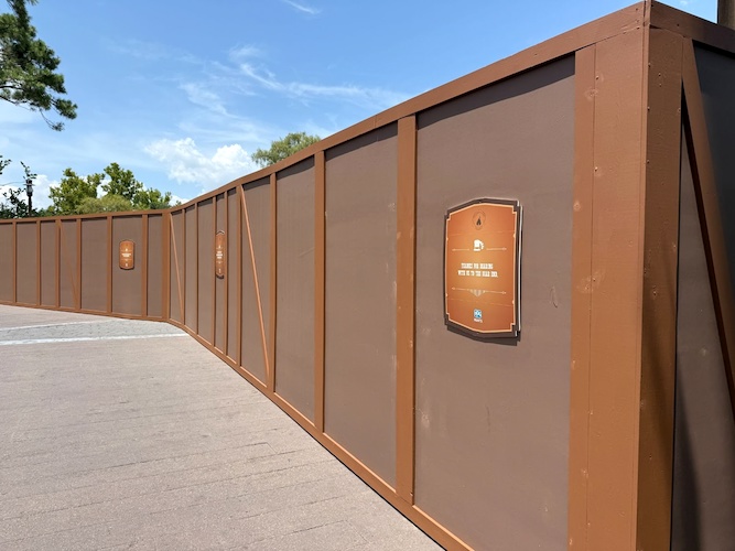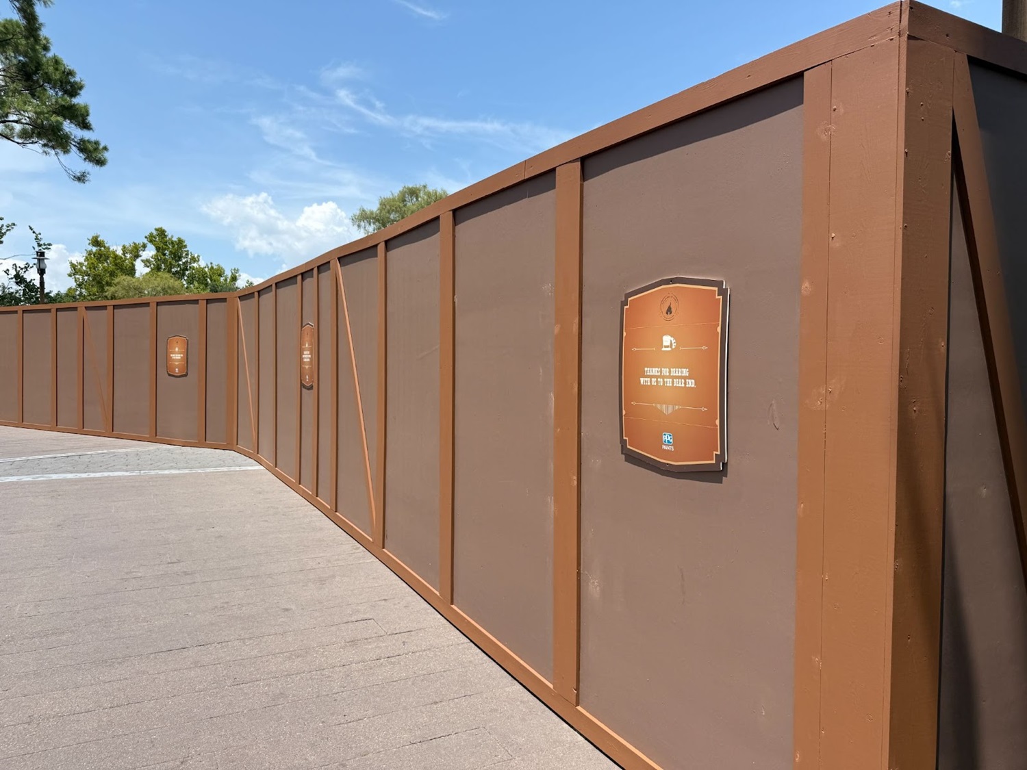 Walls are also up at the entrance to the Frontierland Railroad Station, which is closed to allow for the Rivers of America construction. Guests can still ride the Walt Disney World Railroad via shuttle service from Main Street to Fantasyland and back.