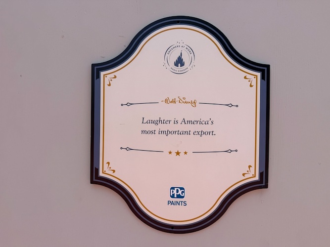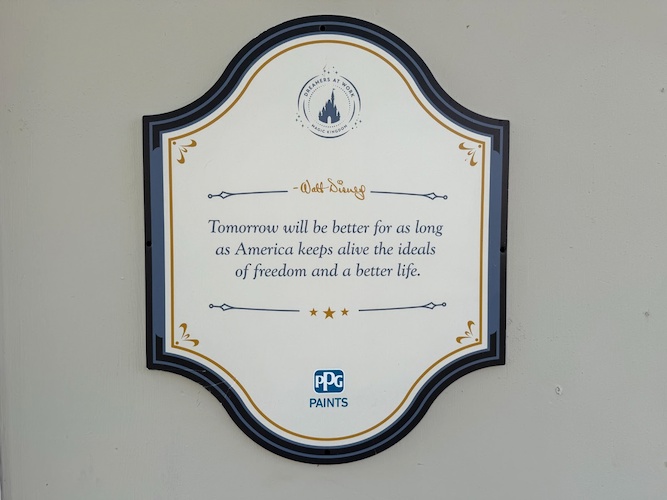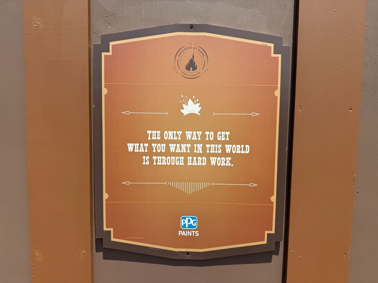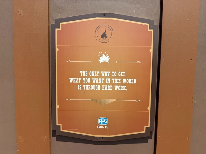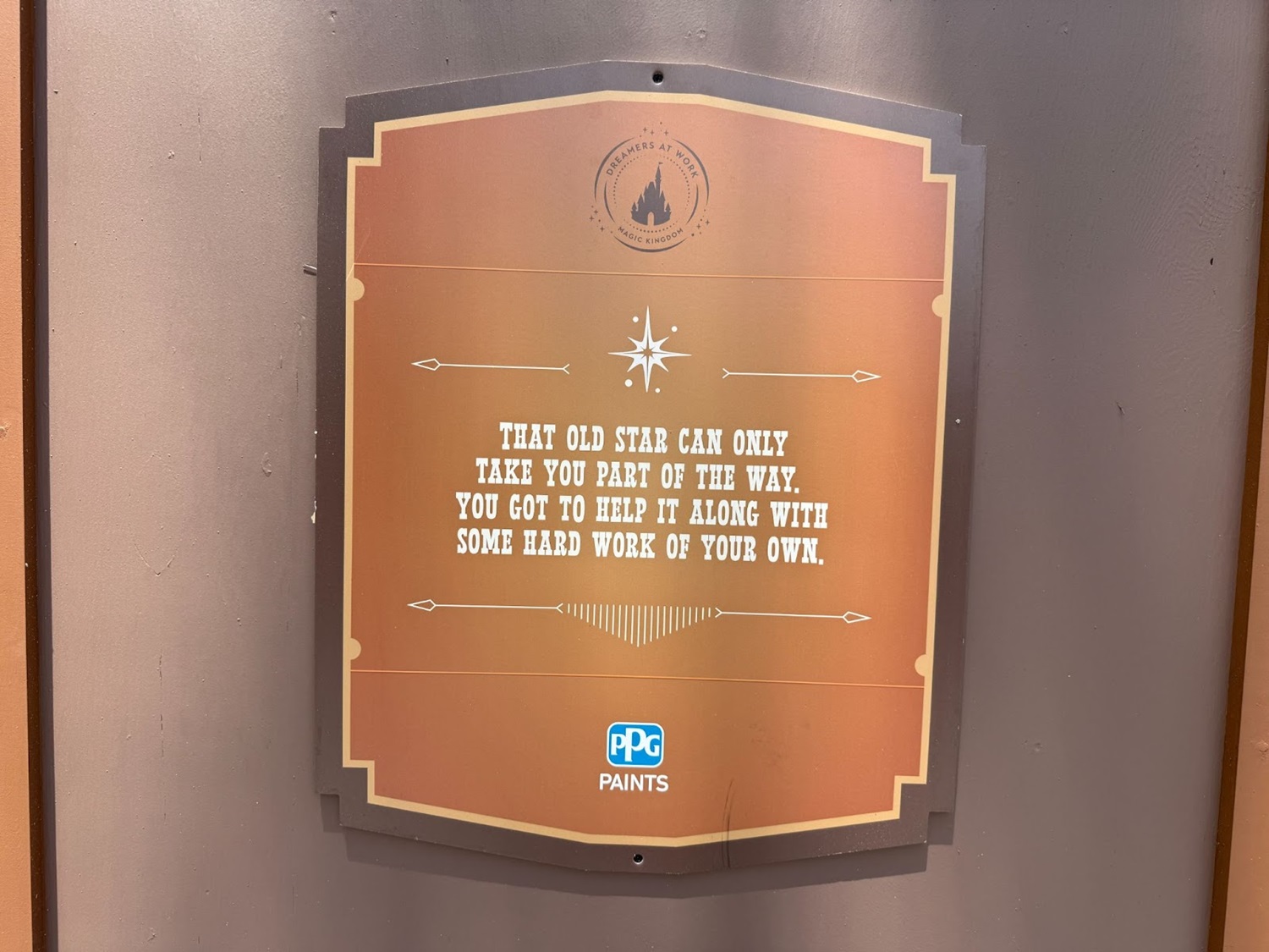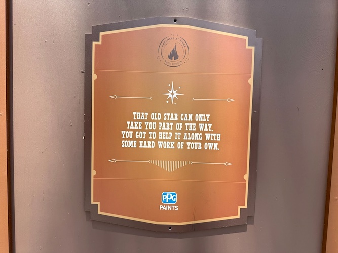 The walls feature forward-thinking quotes from Walt Disney, plus a familiar line from The Haunted Mansion.
