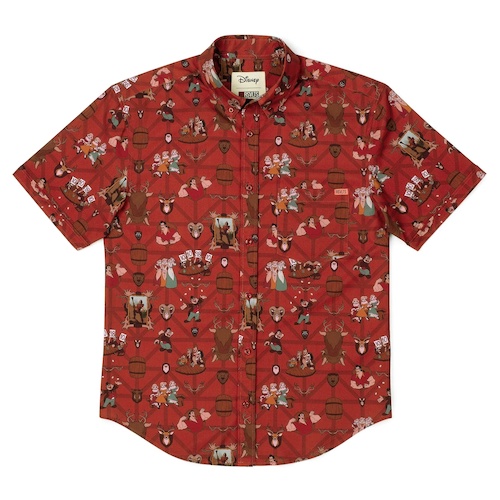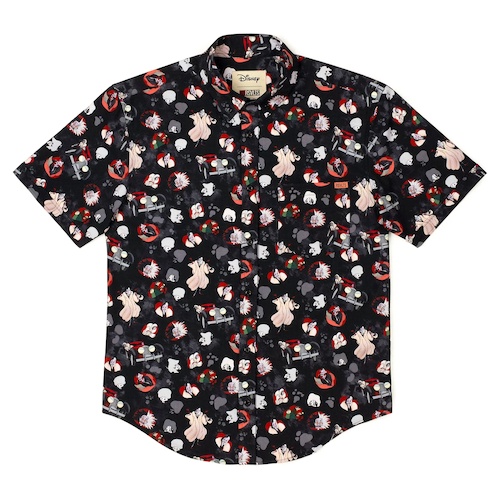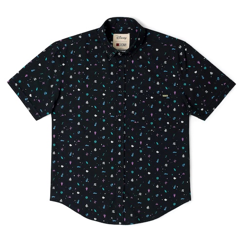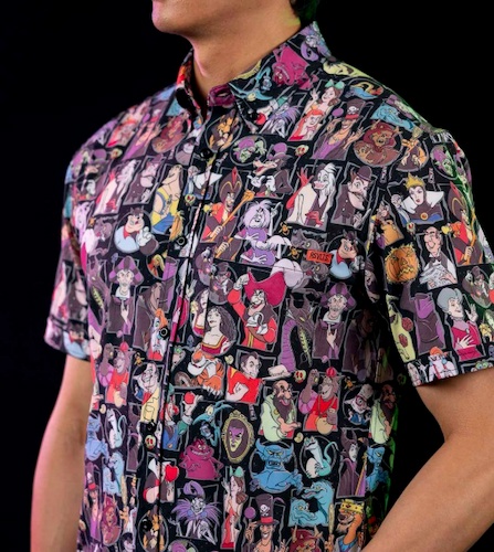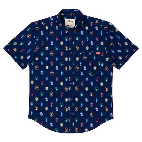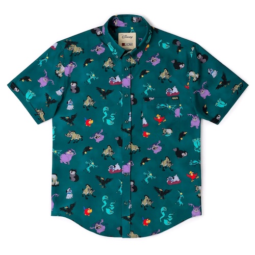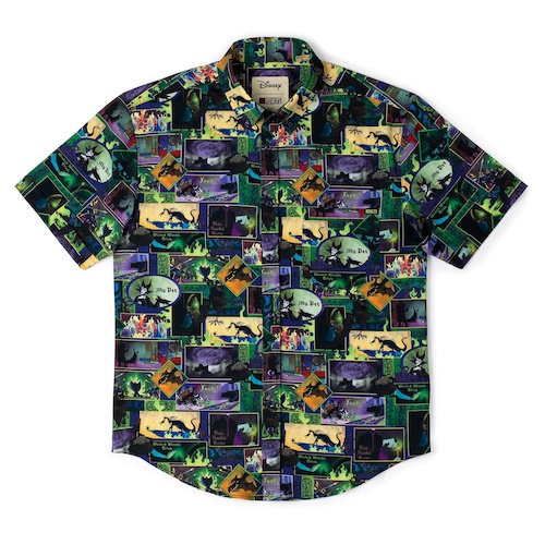 The Terrible Trinkets ($70) button-down showcases shells, poison apples, blue flames, and other villain artifacts.