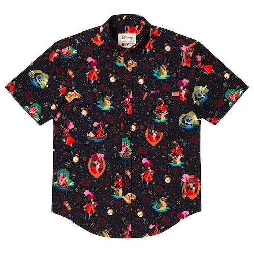 The Hook'd All-Day Polo ($70) features Captain Hook, Mr. Smee, and Tick-Tock the Crocodile, in a print of pirate tattoos and other pirate icons.
