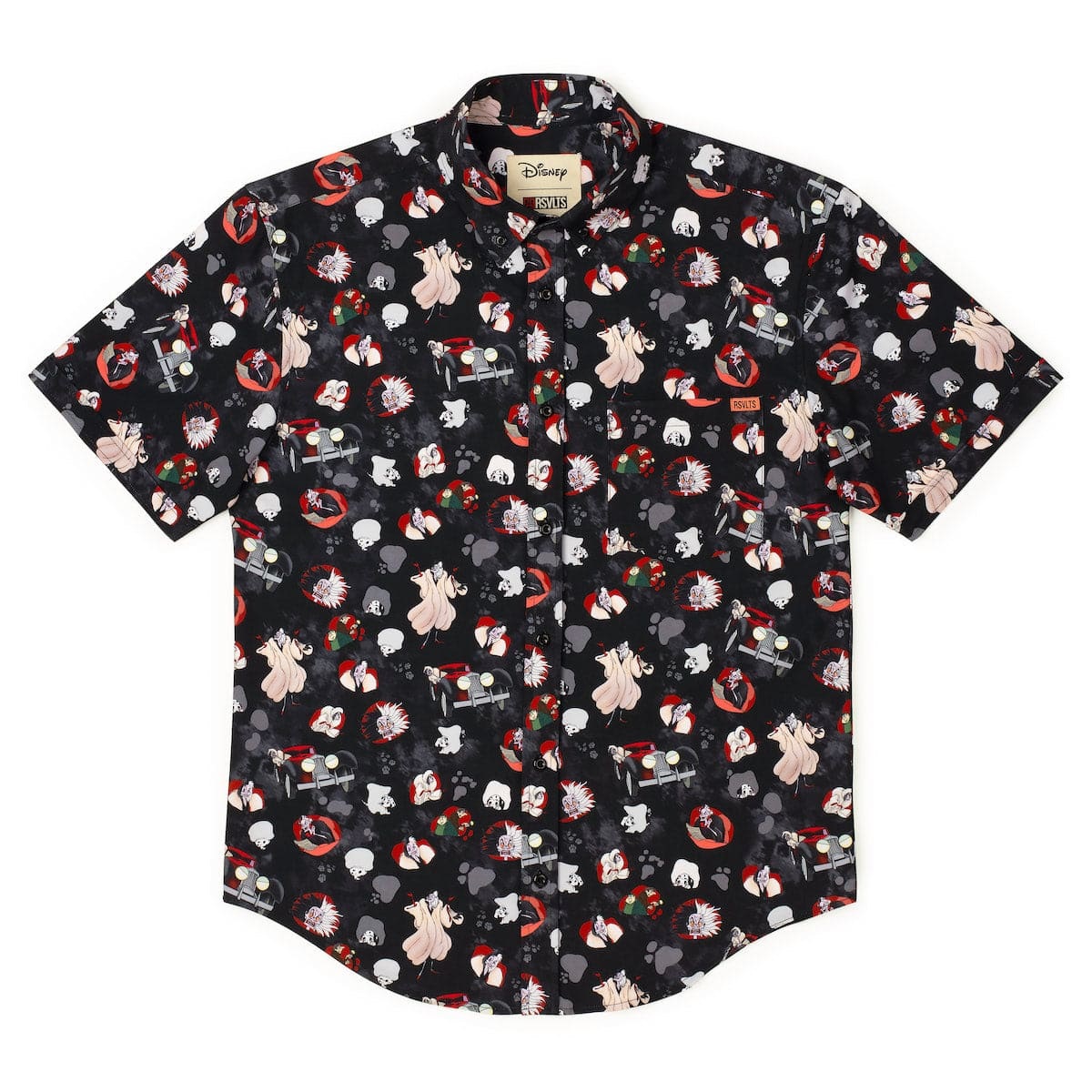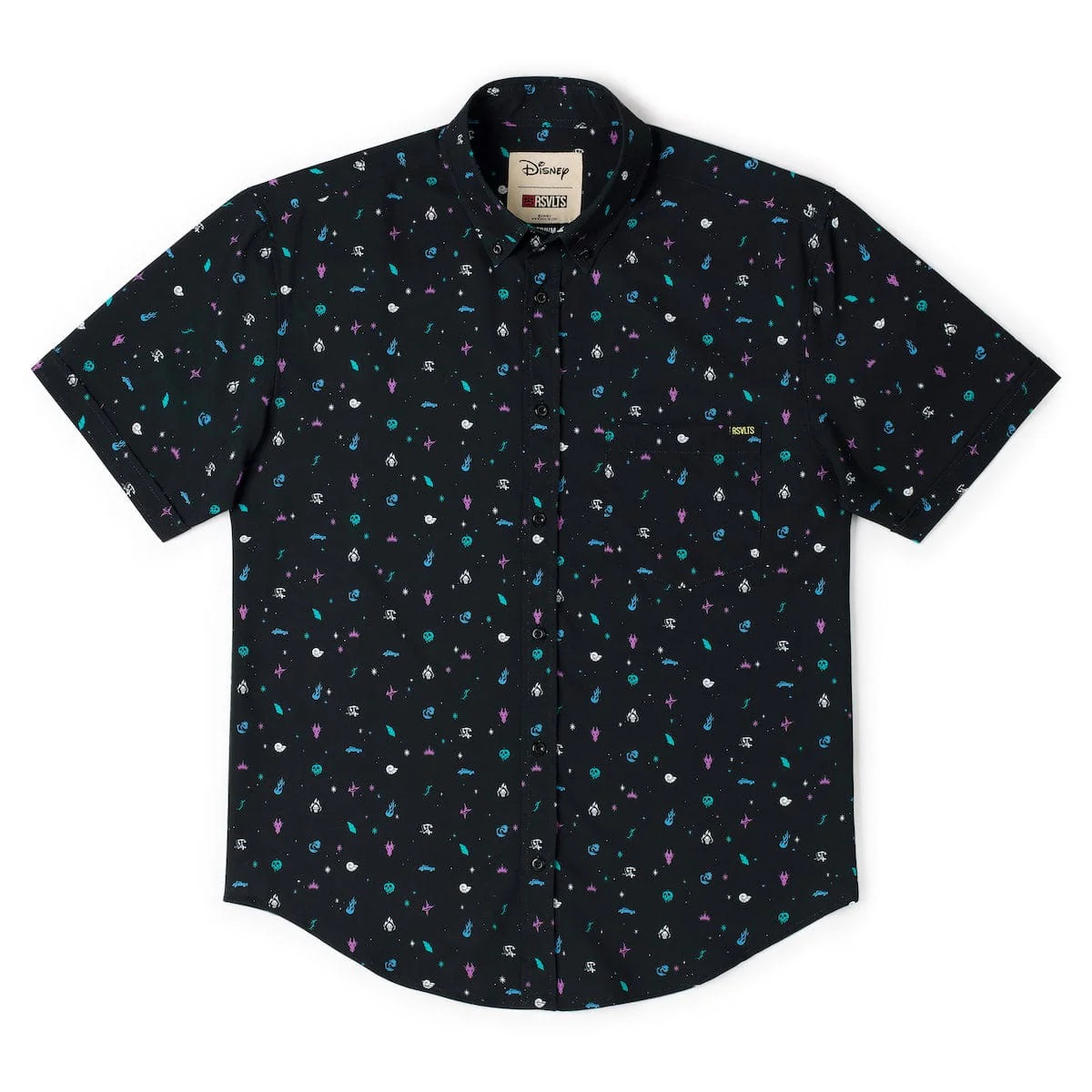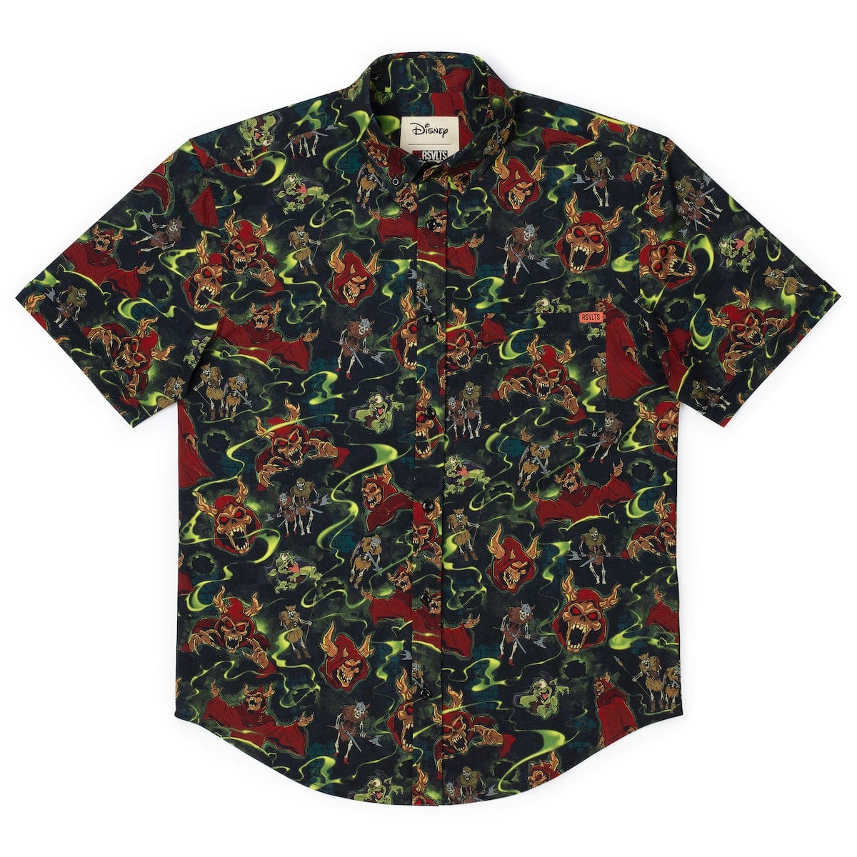 The Terrible Trinkets ($70) button-down showcases shells, poison apples, blue flames, and other villain artifacts.