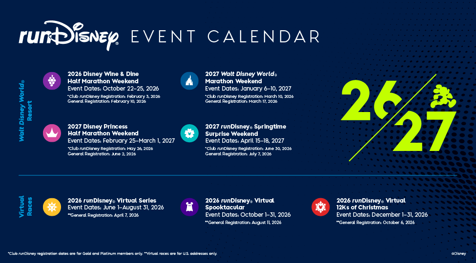 - runDisney has revealed their 2026-27 event calendar, along with the registration dates for each event.