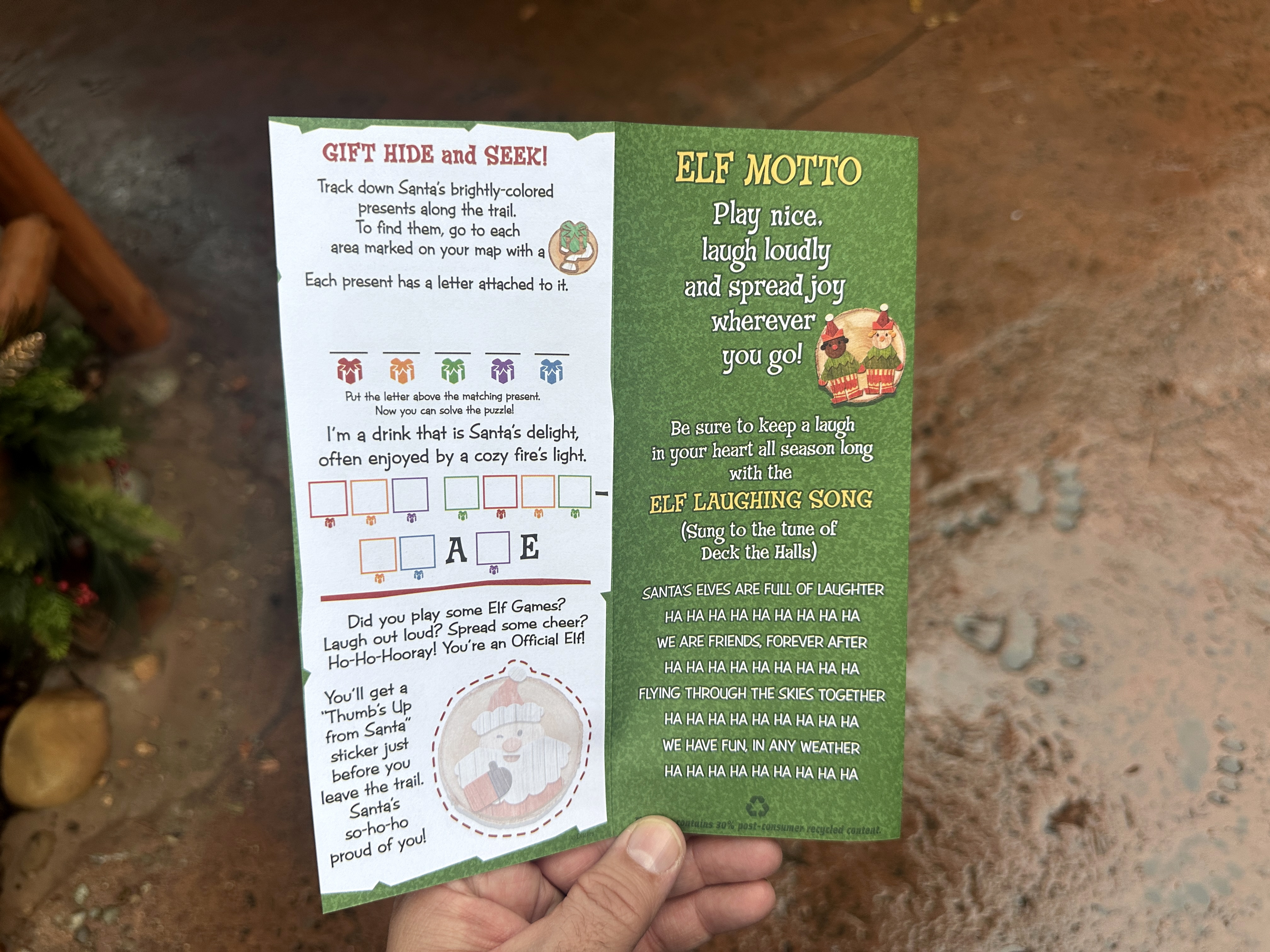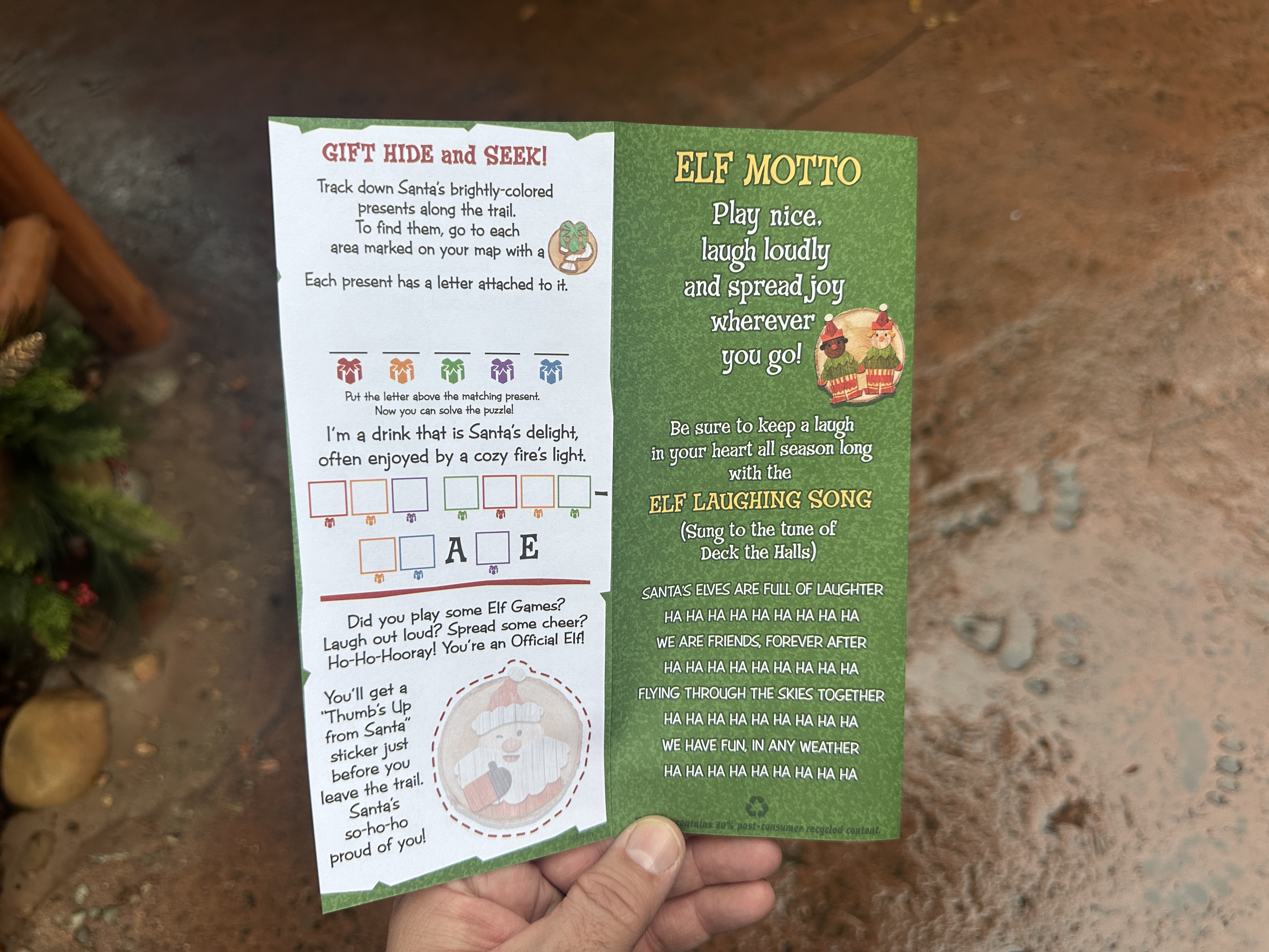 - Santa's Holiday Visit also offers Guests special seasonal activity maps that show the themed offerings within the Challenge Trail, as well as a "Gift Hide and Seek" scavenger hunt.