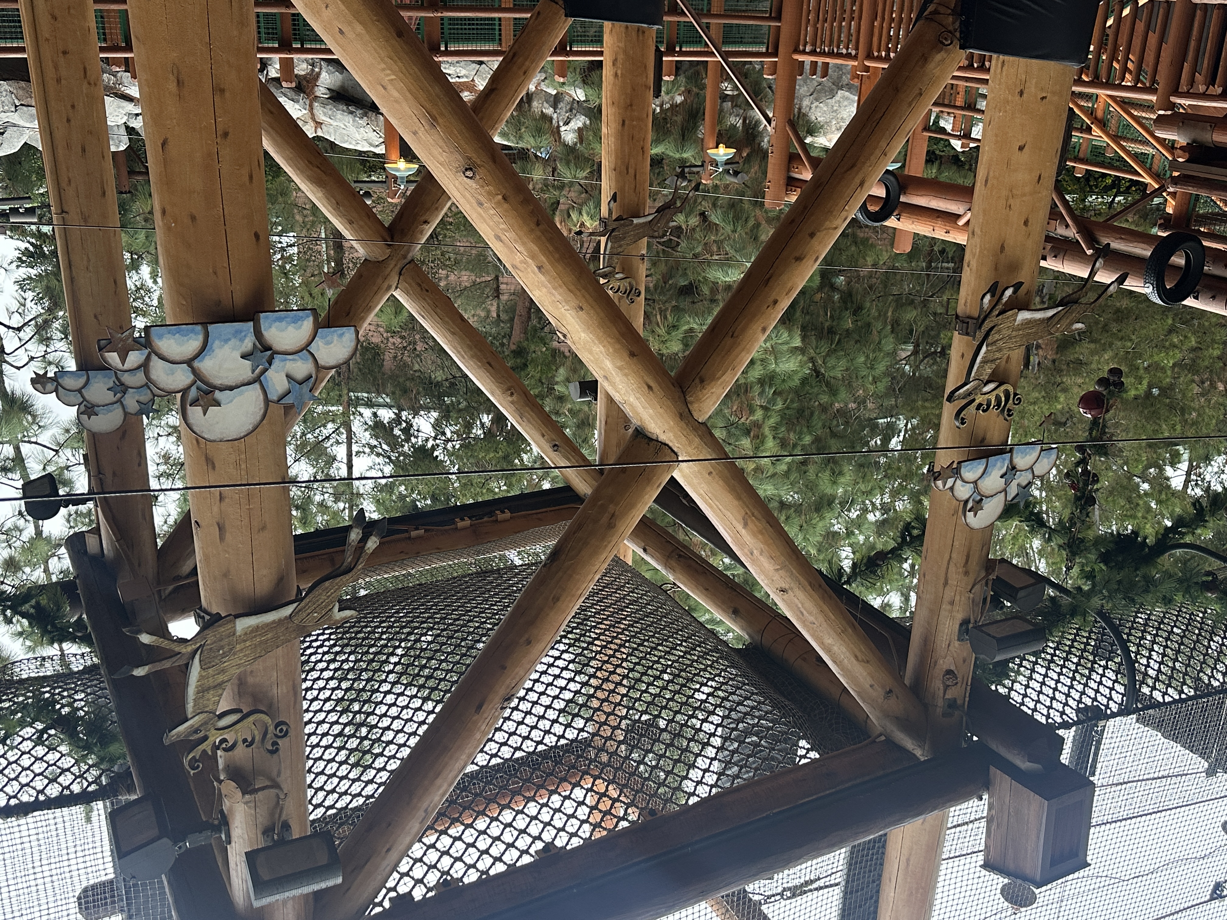 - Beyond the meet-and-greet, the surrounding trail features playful, holiday-themed activities for young explorers, allowing families to enjoy the full Redwood Creek experience during their visit. The area’s rope bridges, rock walls, slides, and lookout towers remain open, giving kids plenty of space to burn off excitement while staying immersed in the seasonal atmosphere.