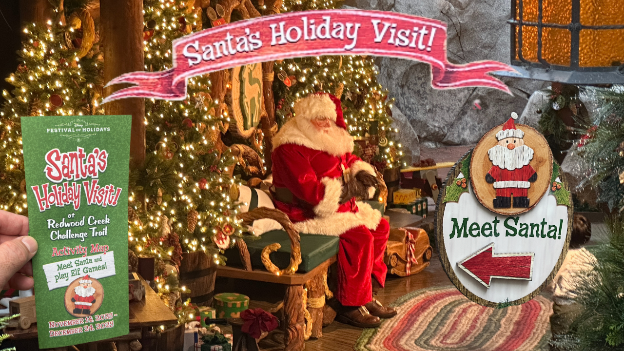 - Santa’s Holiday Visit has once again transformed Redwood Creek Challenge Trail into a cozy, woodland retreat where guests can meet the big man himself in one of the most picturesque settings in the park.
