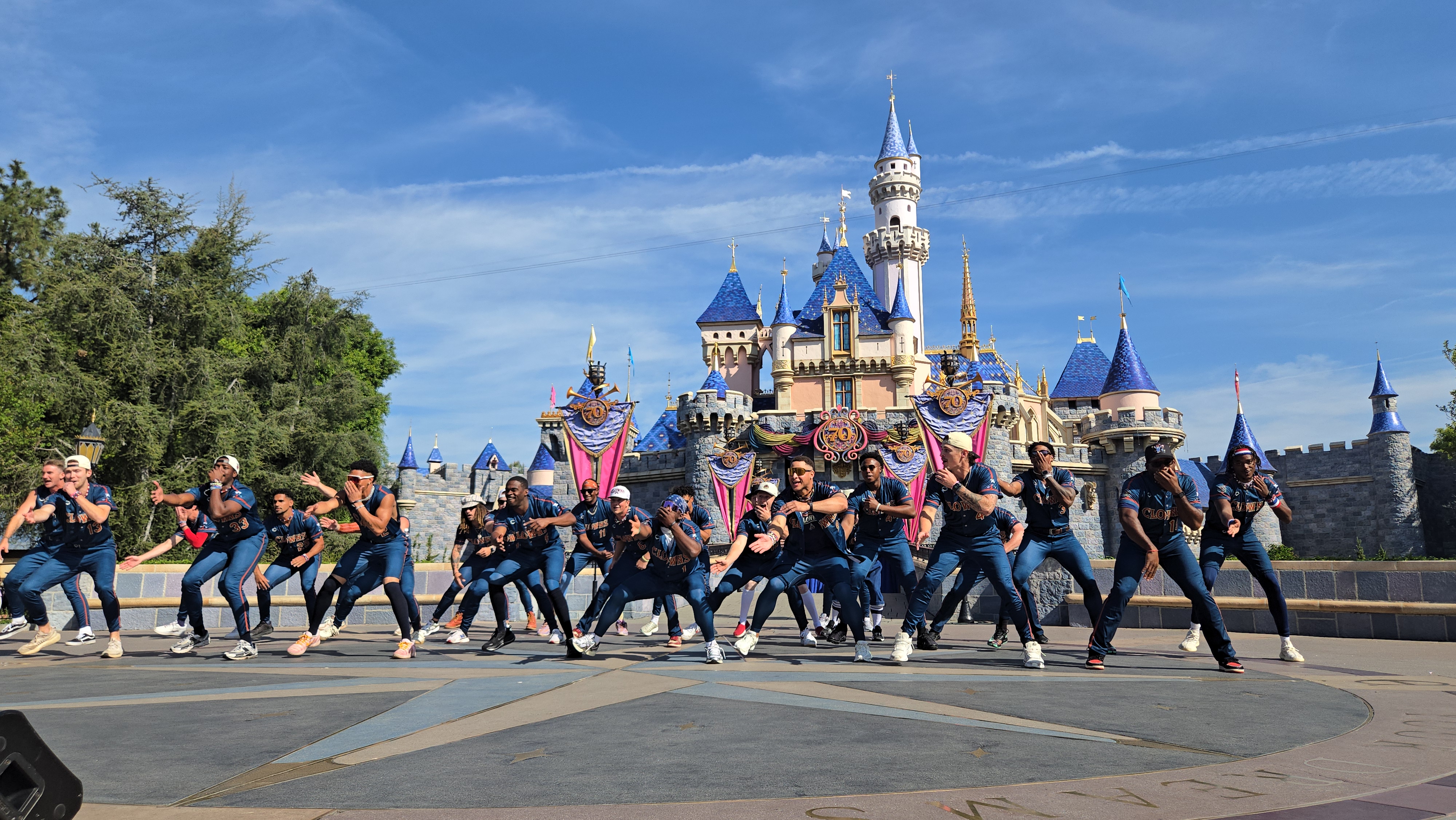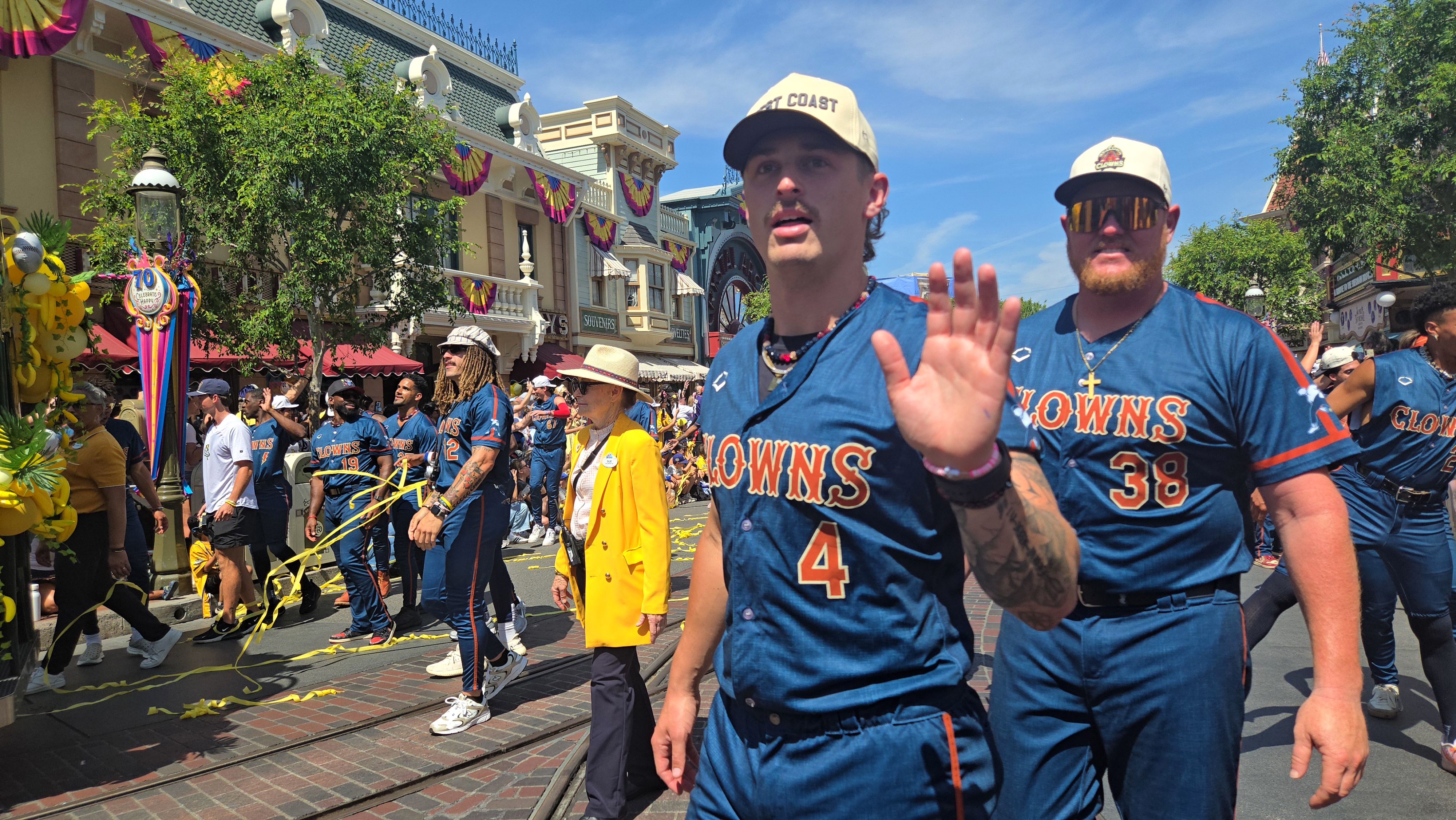 Shortly after the dance performance, the Savanna Bananas took to the streets of Disneyland for a cavalcade down Main Street U.S.A. They were once again accompanied by the Indianapolis Clowns in the cavalcade.